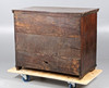 Convertida en una cómoda, con una tapa rectangular con bisagras sobre dos cajones largos de imitación y un par de cajones pequeños, 104 cm de ancho, 54 cm de profundidad y 84 cm de alto.