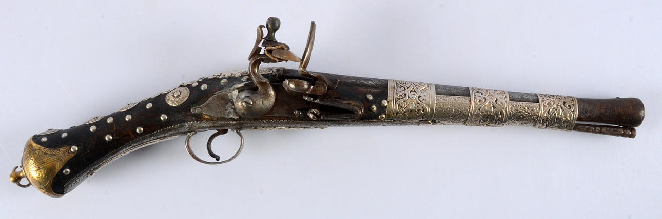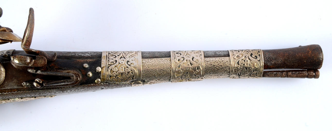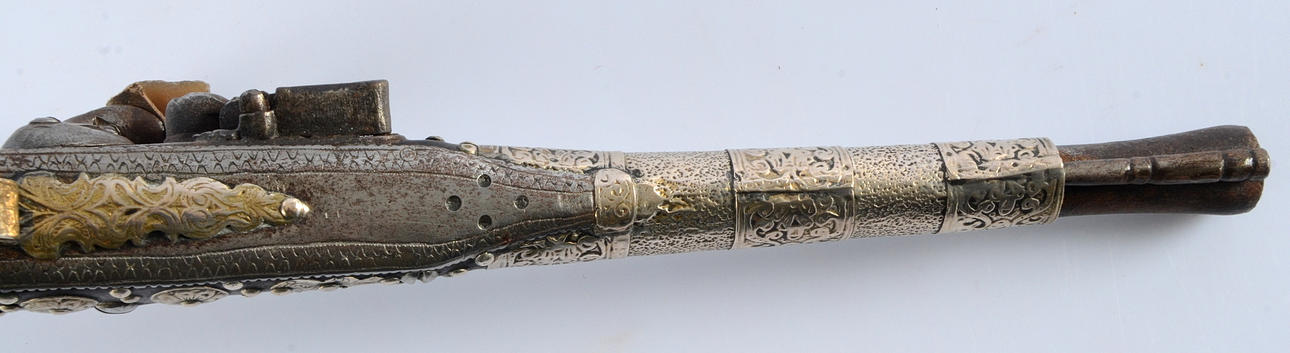 PISTOLA FLINT LOCK, oriental, hacia 1810.