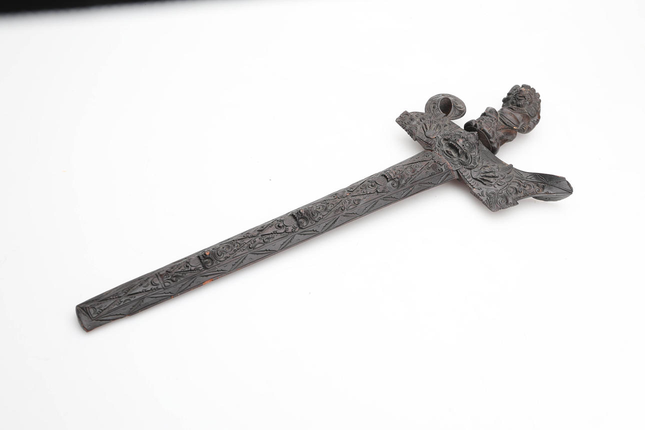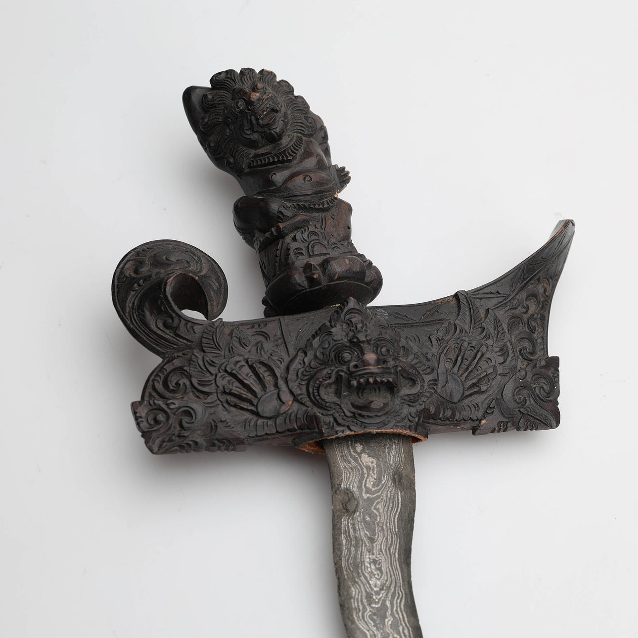3953932. KRISS, daga con hoja ondulada, madera tallada.
