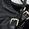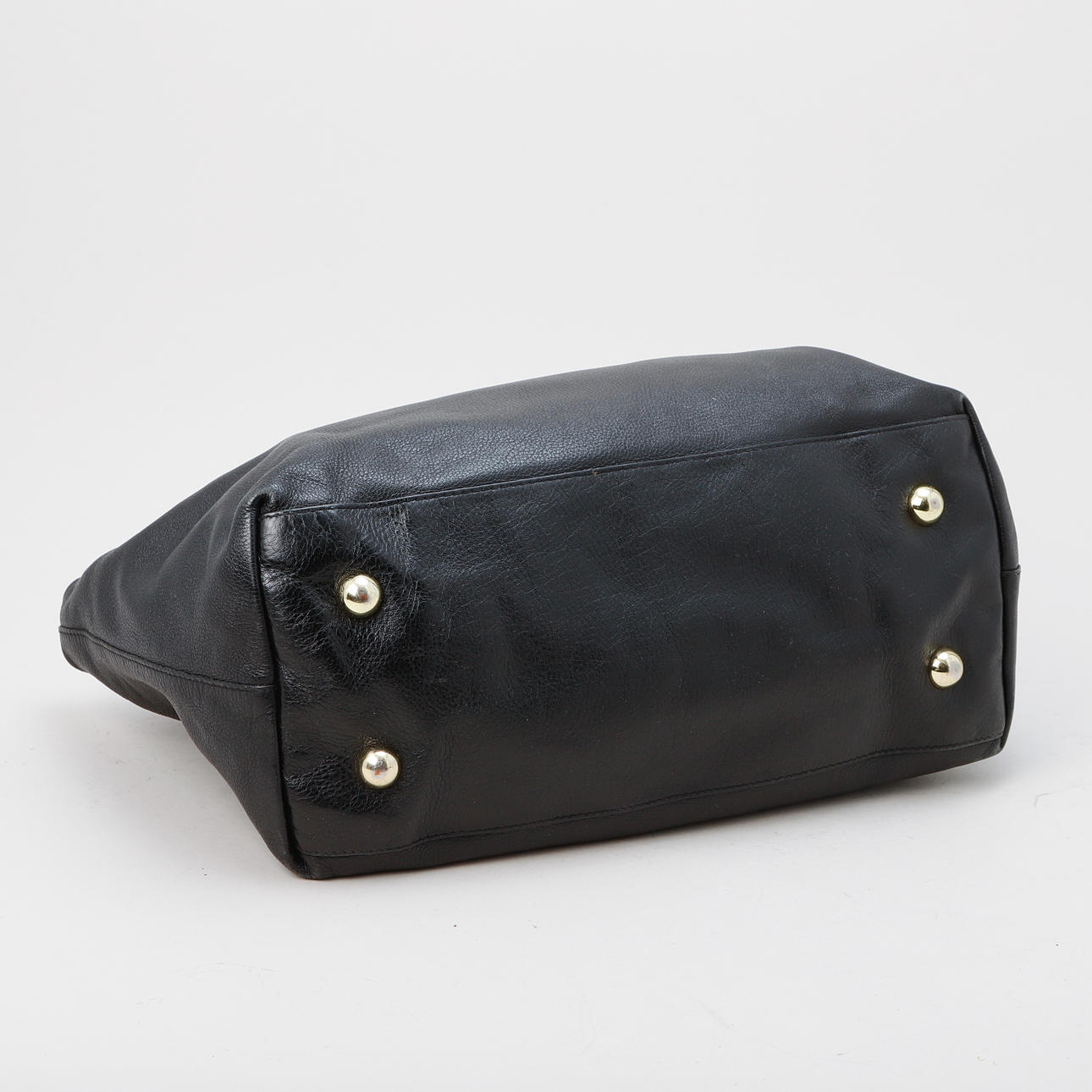 Piel negra con detalles metálicos amarillos. Interior vestido de gamuza negra. 50 x 16 x 24.