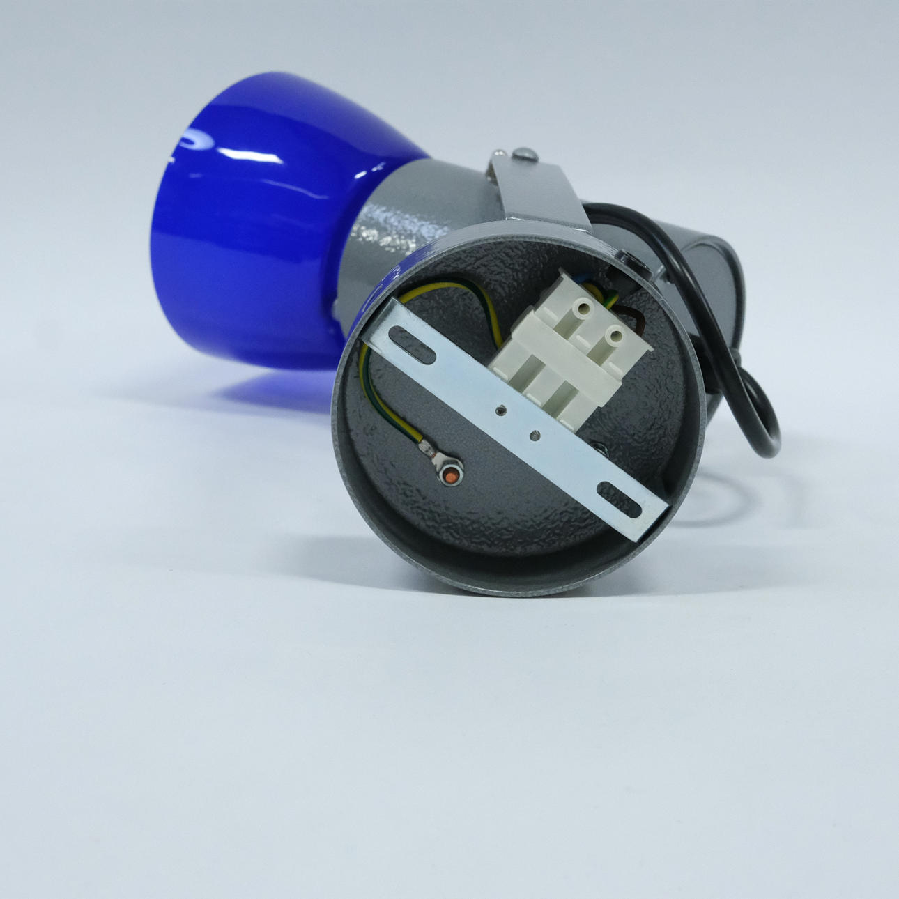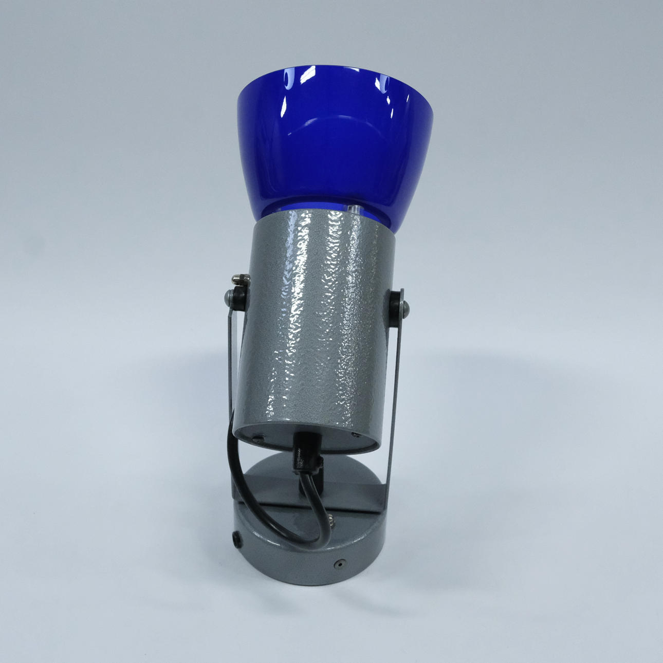 De metal con copa de cristal azul, 30 cm de longitud, giratoria.