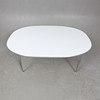 Patas cromadas. Longitud ca 151 cm. Ancho aprox. 101 cm. Altura aprox. 70 cm.