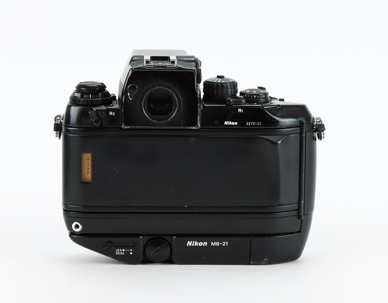 Cuerpo de cámara Nikon F4 con batería Nikon MB-21.