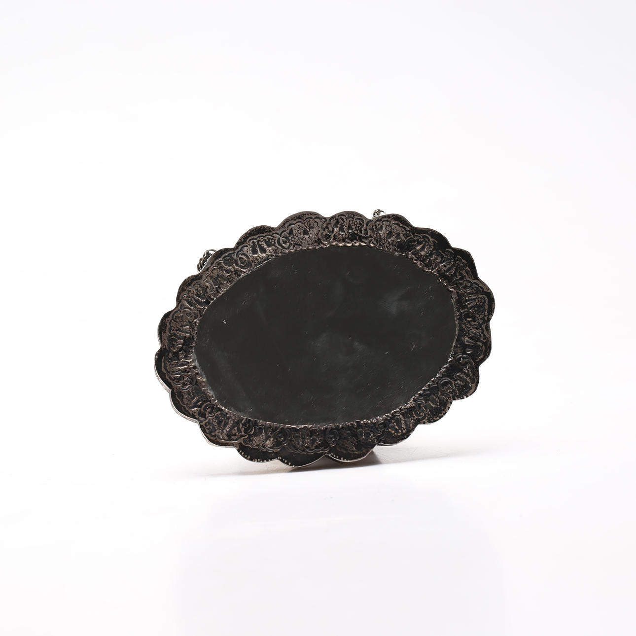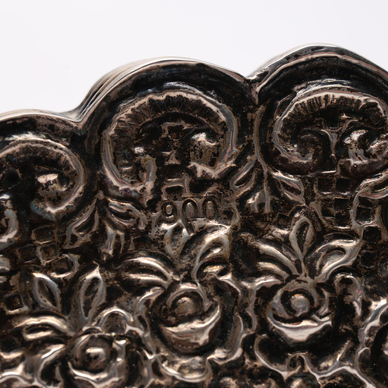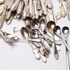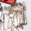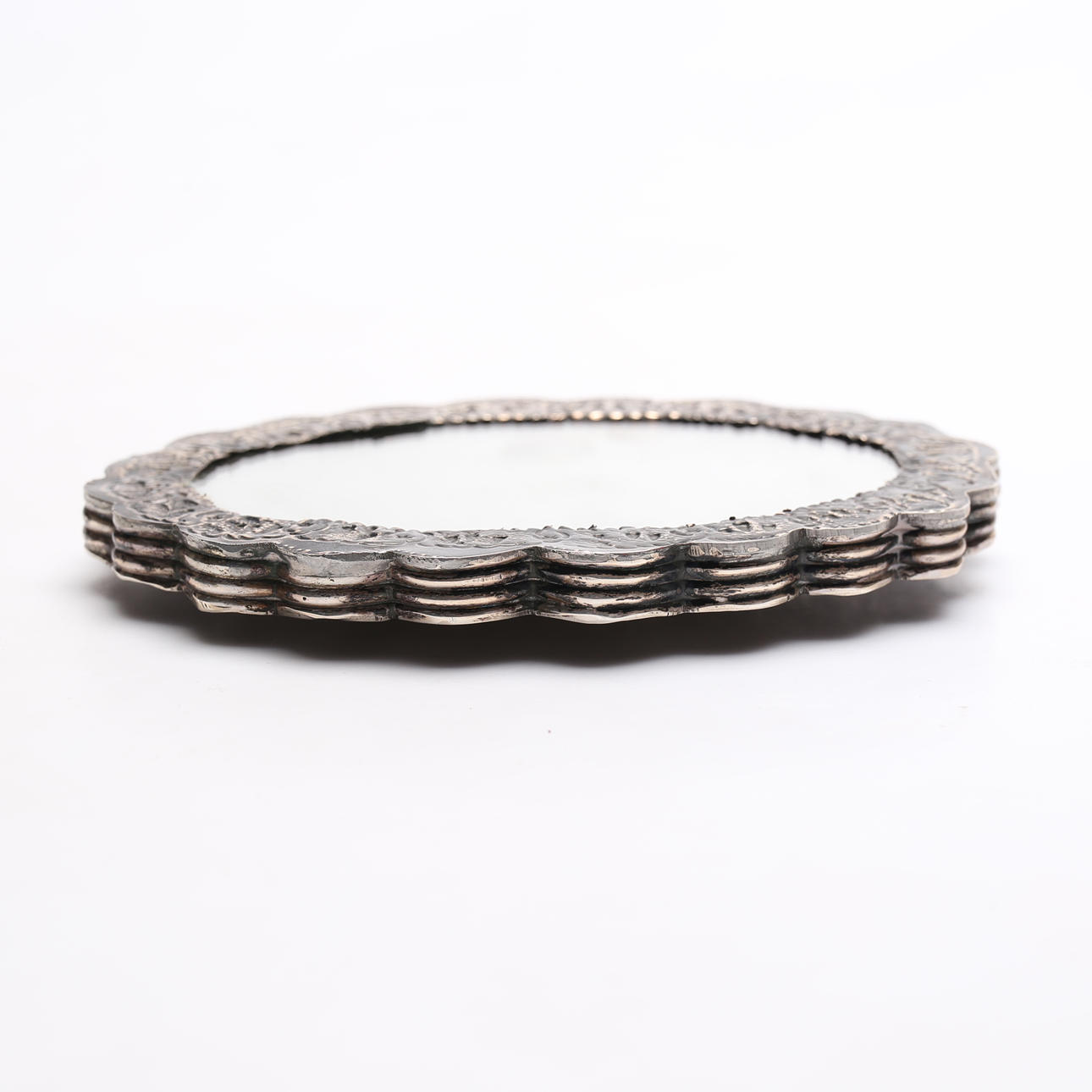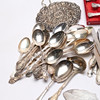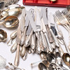 Entre otras cosas, piezas de juegos de cubiertos. Pueden estar presentes otros metales. Espejo de mano en plata, sin estampar.