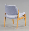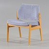 Estructura en roble, tapicería de felpa azul.