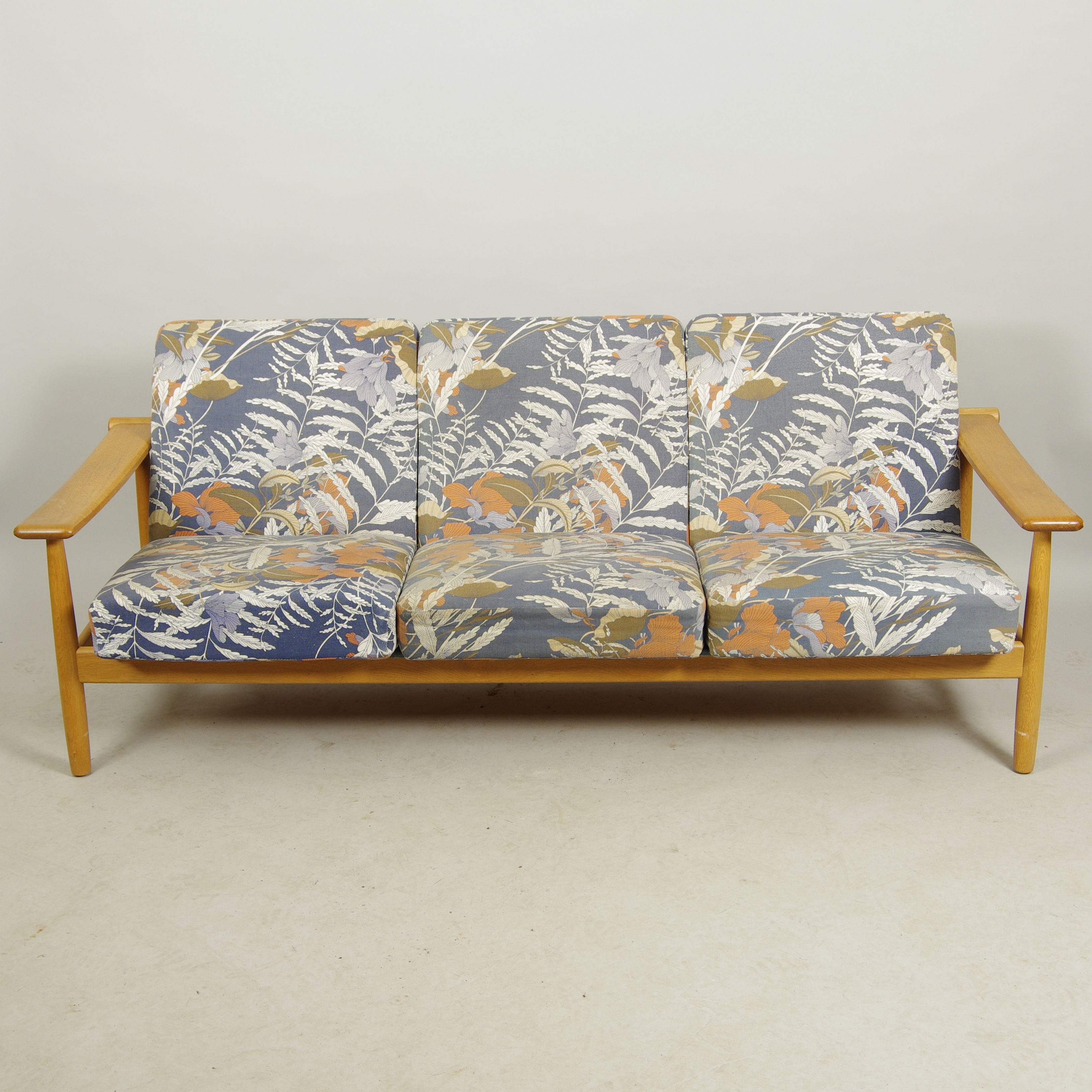 399810. SOFÁ Y SILLÓN, roble, años 60/70.