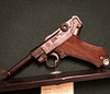 Pistola semiautomática alemana marca Mauser modelo 08. Calibre 7.65. No adicional 7546. Longitud del caño: 10 cm. Objetivo fijo. Cargador extraíble. Marca de calibre en el lado izquierdo del cañón. Contrato sueco en 1940. Los lados del pistón son de madera. Un arma con forma de número, incluido el cargador. Mantel marcado 1940.
