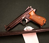 Pistola suiza semiautomática. Marca Sig Model 210. Calibre 22lr. No adicional 41763. Mira ajustable. Cargador extraíble. Los lados del pistón son de madera. Un arma con forma de número.