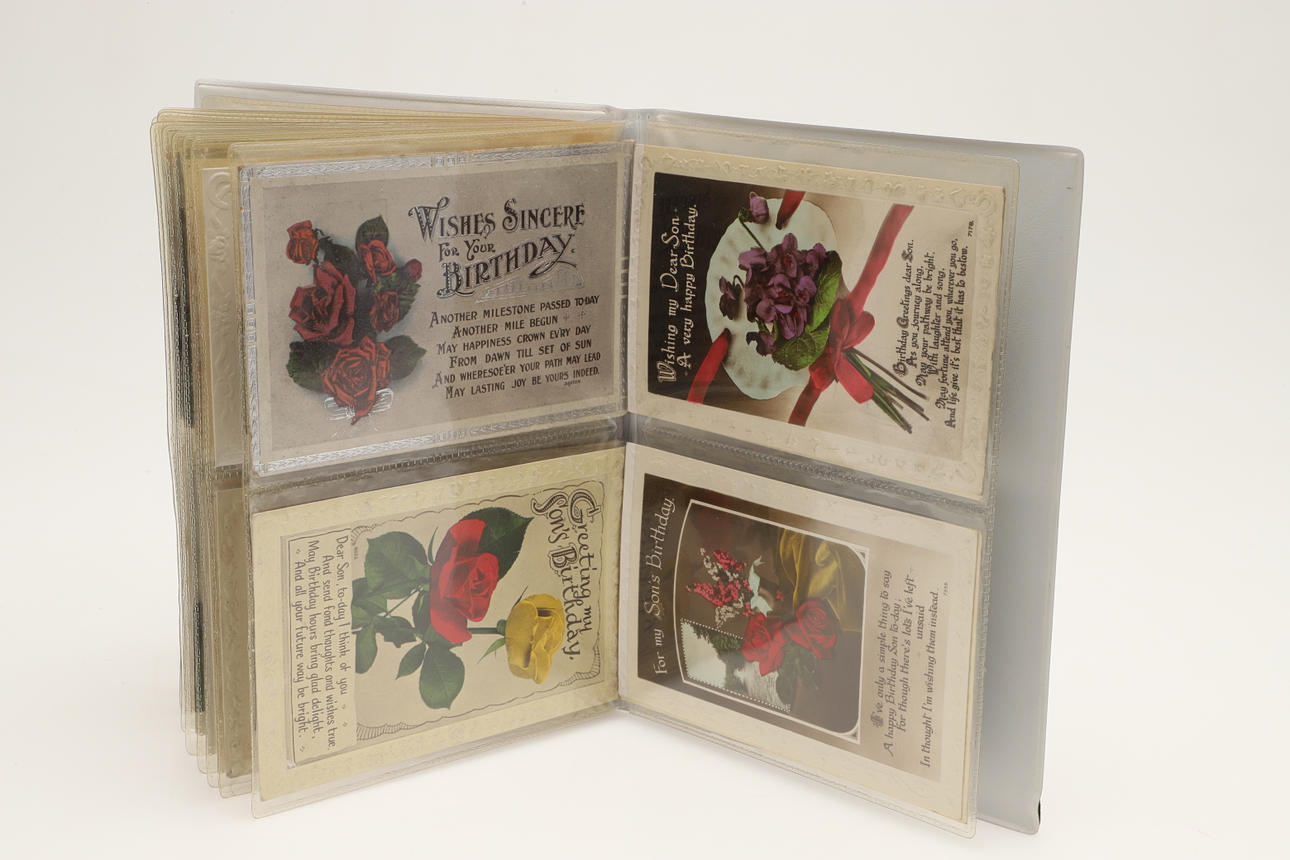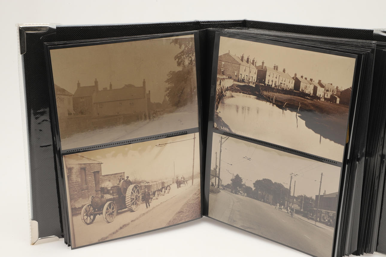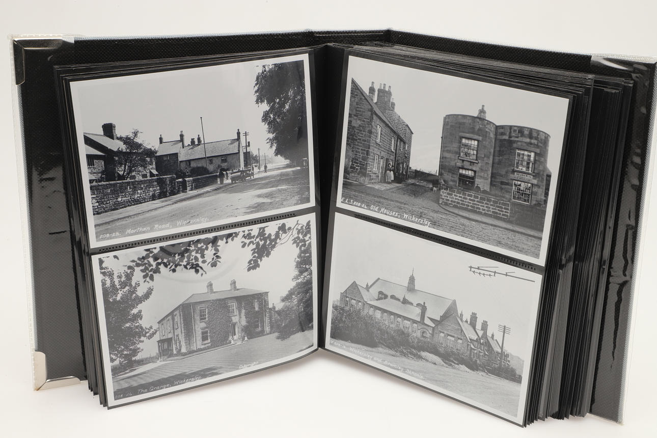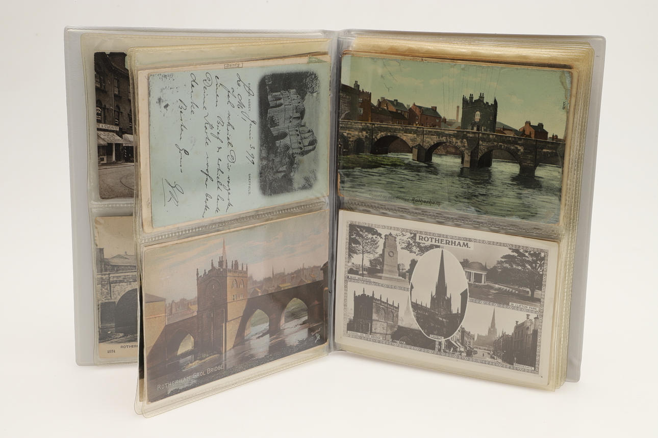 Dos álbumes con aproximadamente 104 postales, incluidas Rotheram (varias), Wickersley (varias), Carte de Visites, Portsmouth Dockyard, Victorias Anchor Southsea, Sheffield, Ludlow (varias) y otras postales. (2).