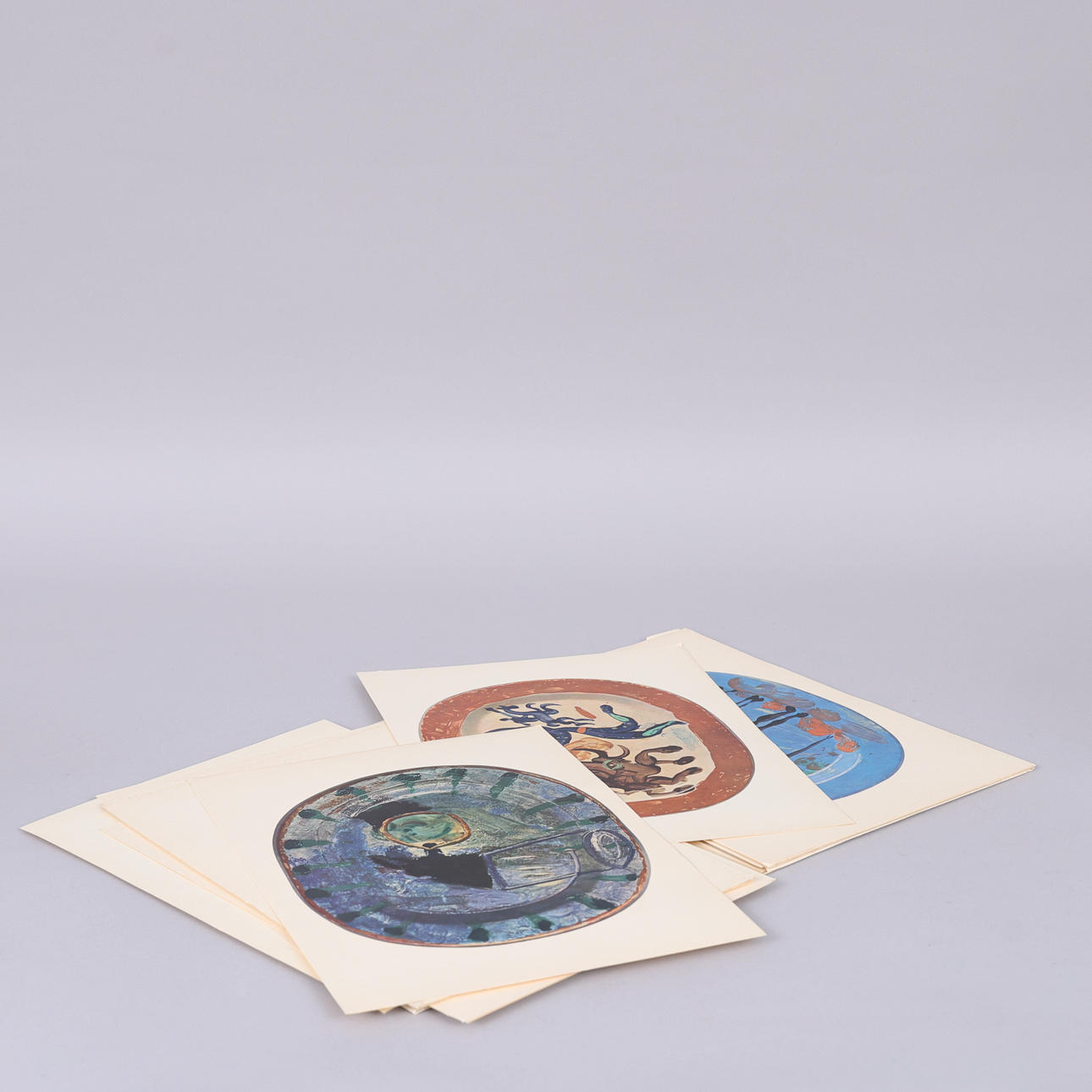 Portafolio con 17 impresiones en color de cerámica de Picasso. Falta una huella.