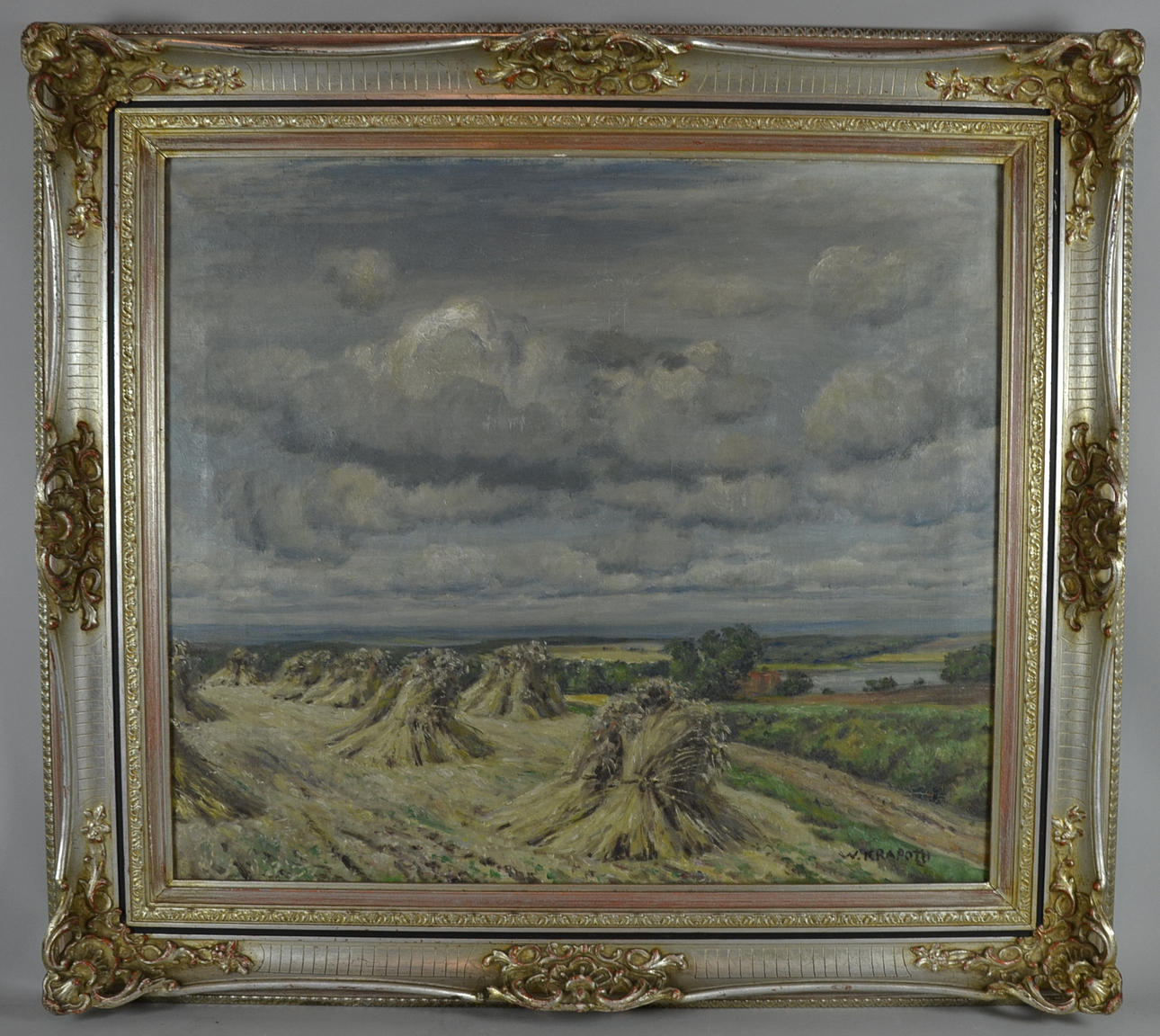 1 x óleo sobre lienzo. firmado W. Krapoth y 1 x óleo sobre tabla firmado Brandt. Marco 52,5 x 63cm y 94 x 104cm.