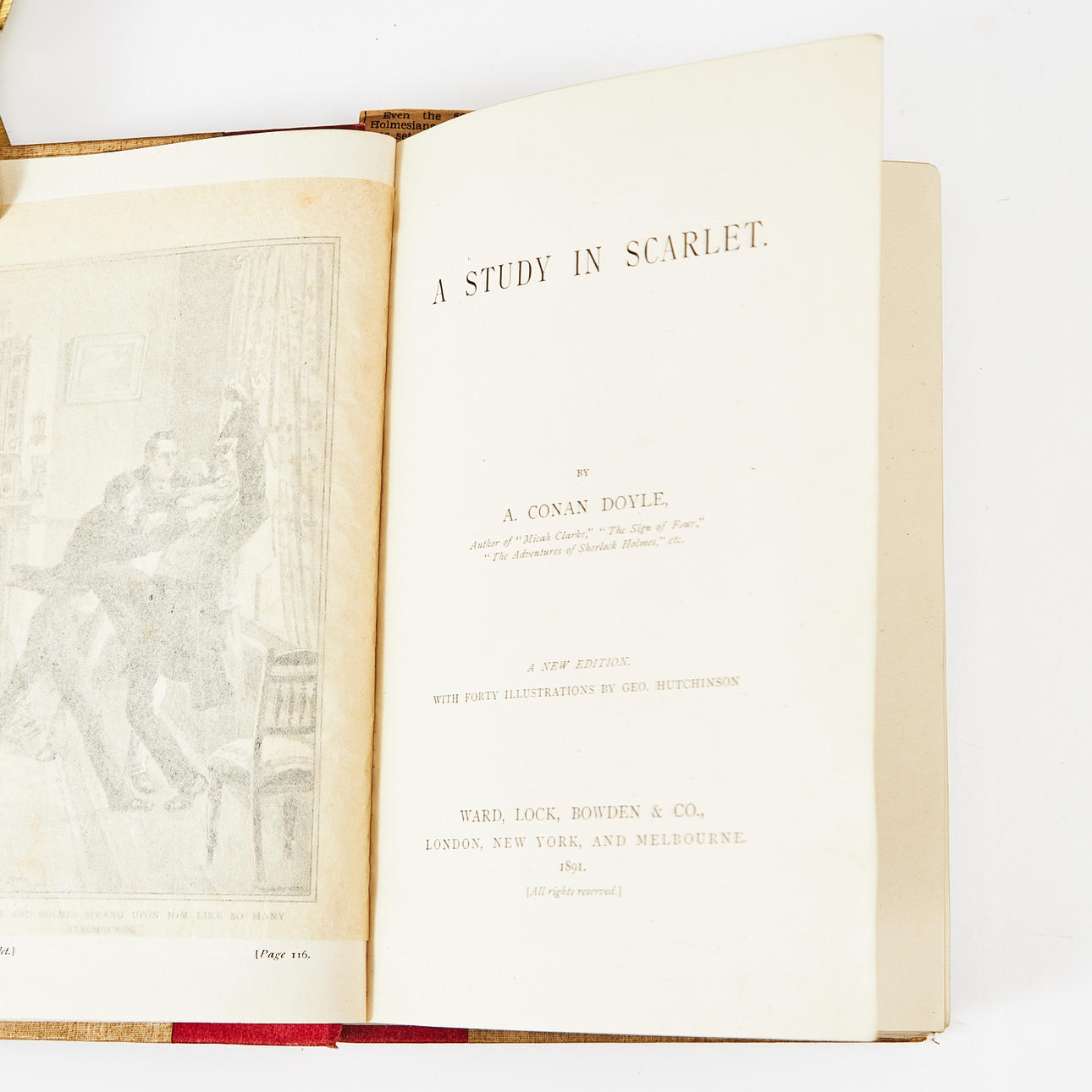 DOYLE, CONAN. Un estudio en escarlata (..) Una nueva edición. Con cuarenta ilustraciones de Geo. Hutchinson, Londres en 1891.