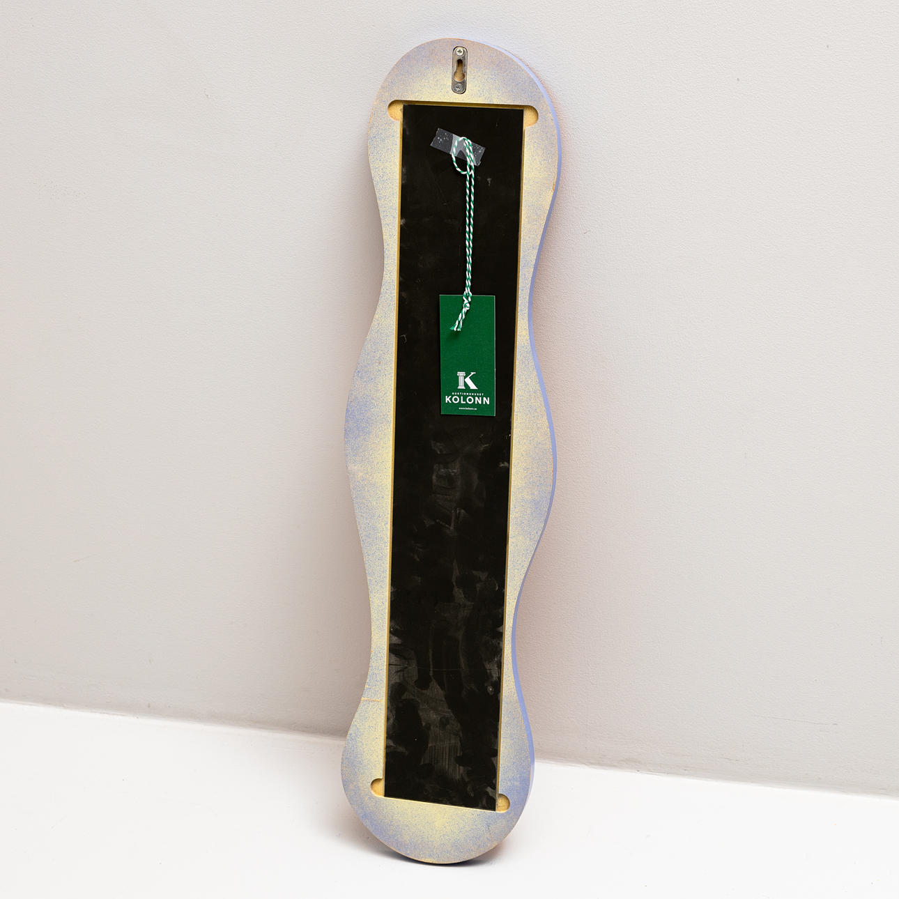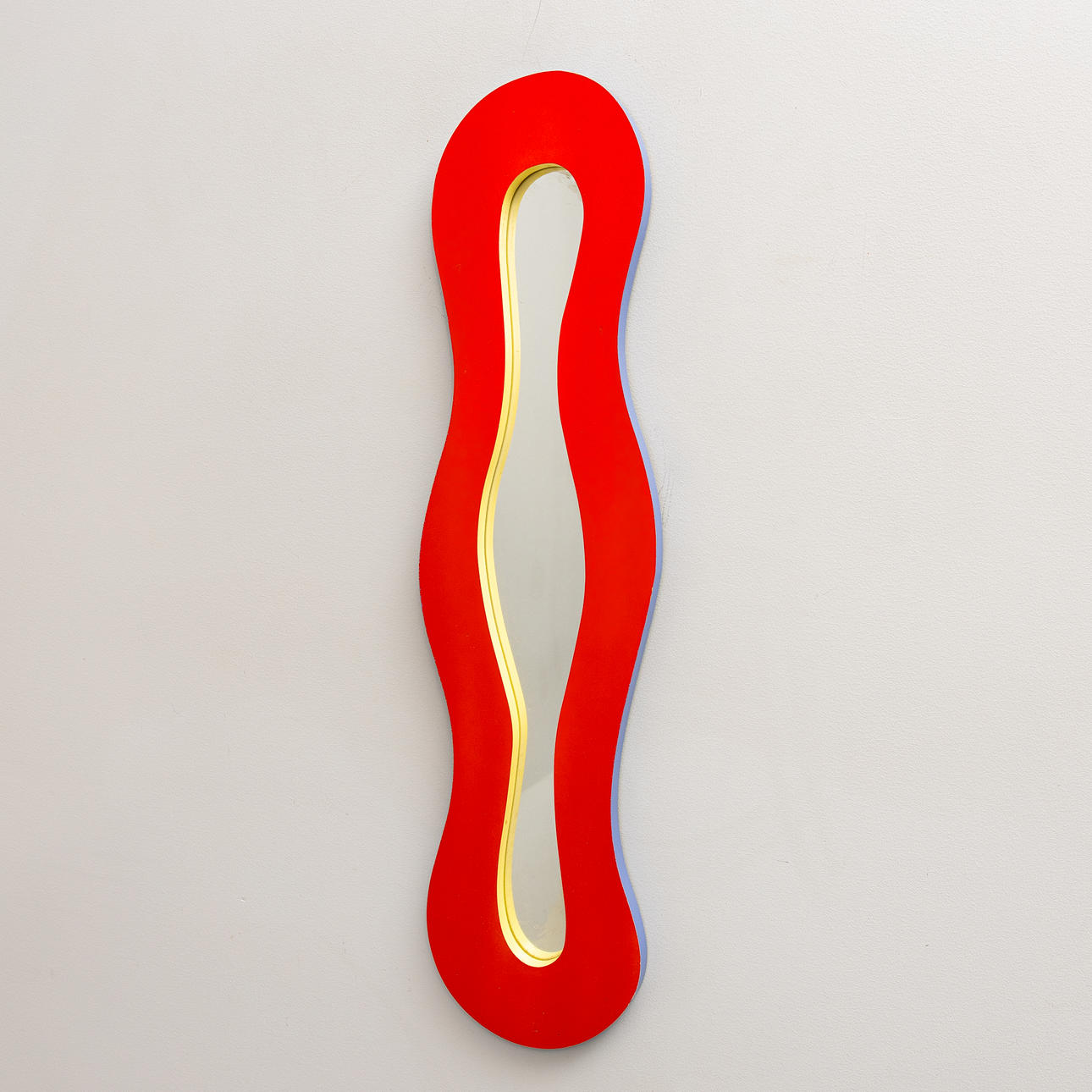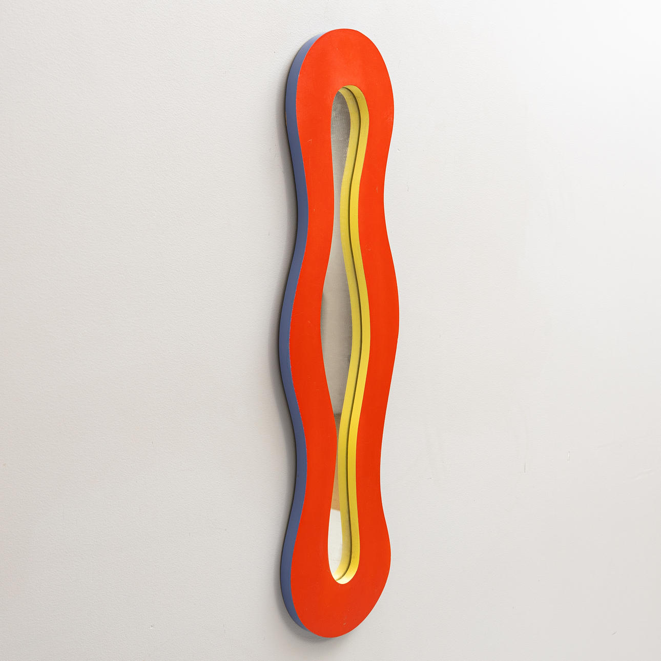 Forma ovalada ondulada, el marco en rojo, amarillo y azul.