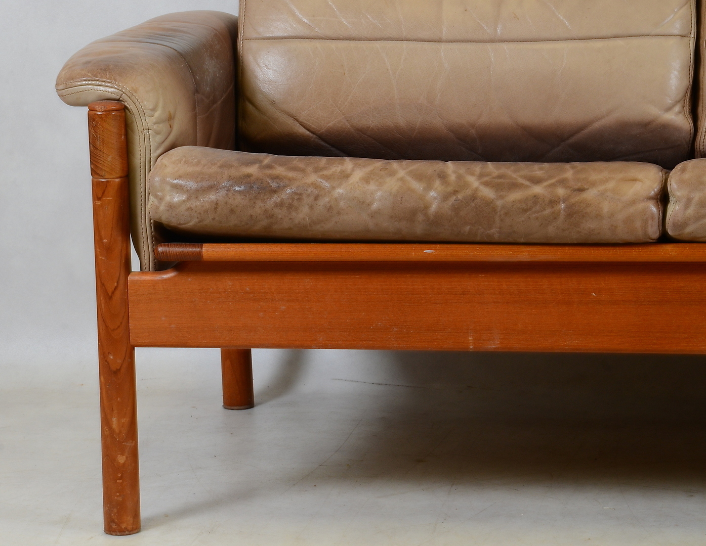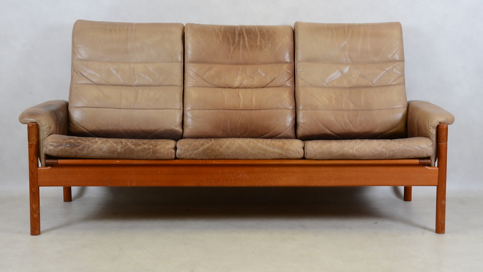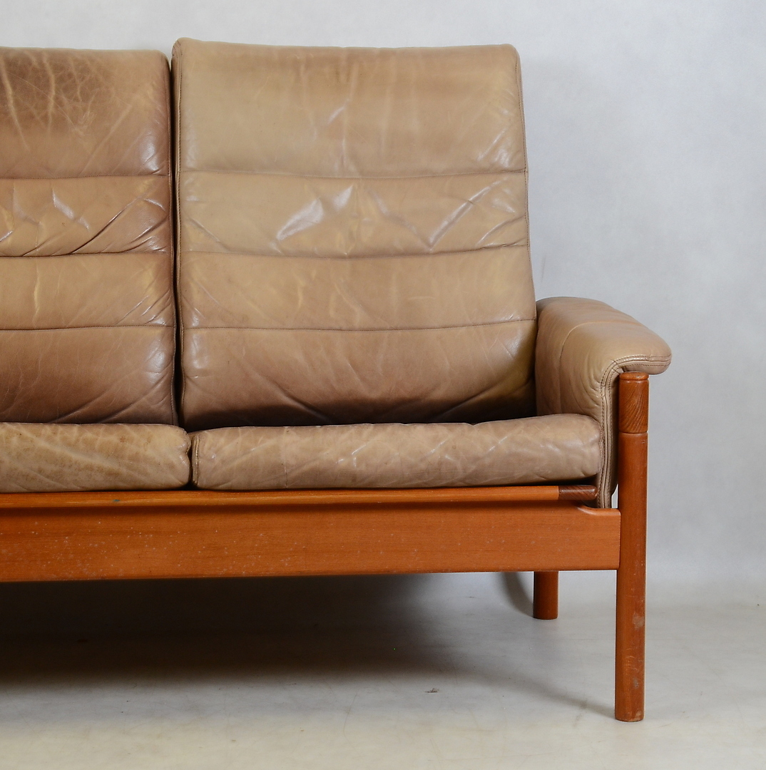 411504. SOFÁ DE CUERO, teca, años 60/70.