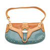 en marrón y azul, herrajes de metal dorado,