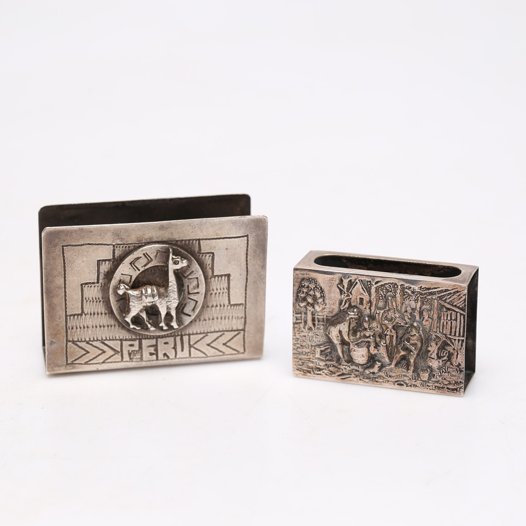 4135602. Un par de cajas de fósforos, plateadas.