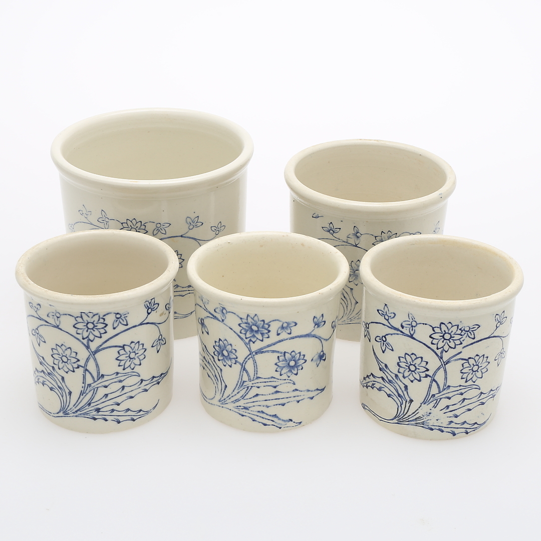 414046. MUG, 5 piezas, azul y blanco, Gustafsberg.