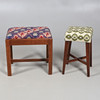 con un asiento abatible bordado, sobre una estructura con marco en H, 47 cm de alto x 50 cm de ancho x 38 cm de profundidad, junto con otra similar (2).