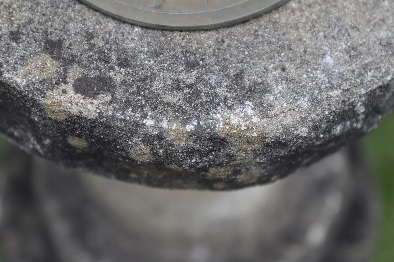 La esfera de metal sobre una parte superior y una columna redondas, sobre una base redonda de dos escalones. 52,5 cm de altura x 33,5 cm de diámetro.