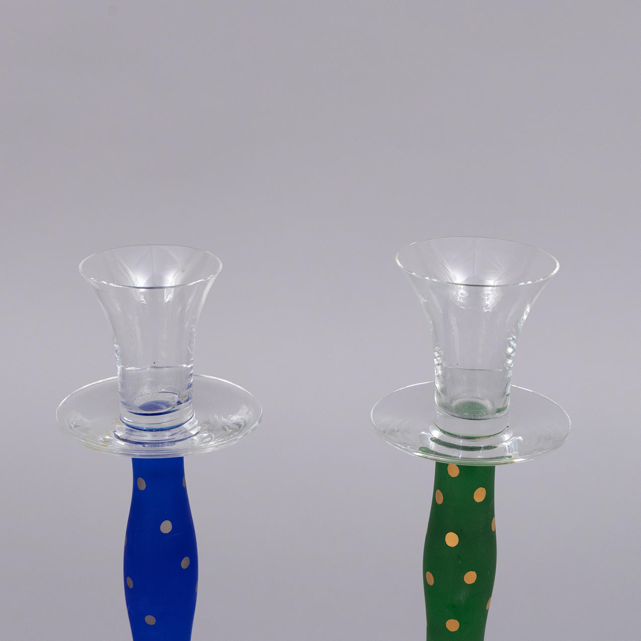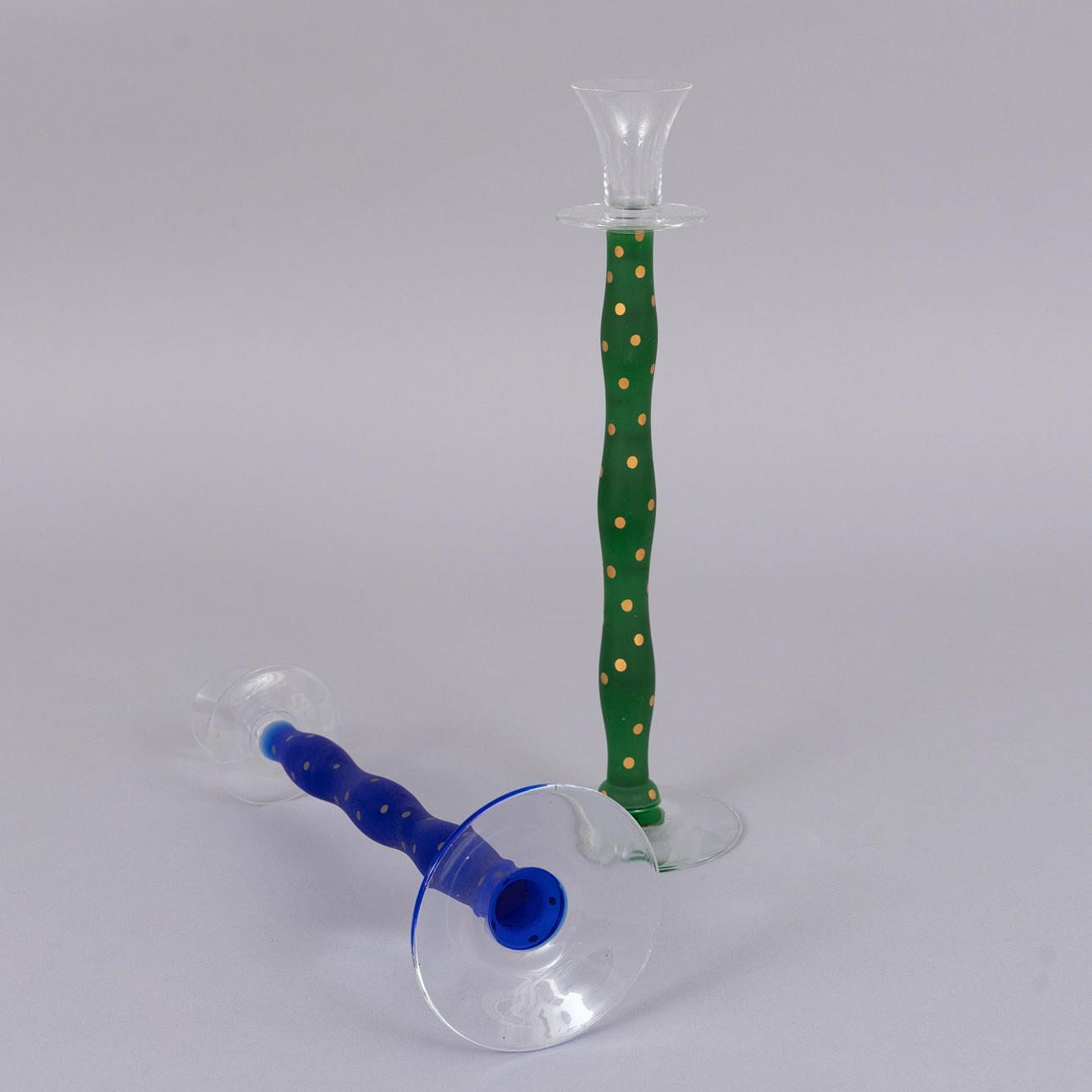 4154446. ANNE NILSSON. Candelabros, 2 piezas, vidrio, «Celeste», Orrefors.