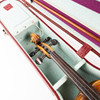 Tapa de abeto, fondo de arce. Tapa trasera de dos piezas. Medida corporal aprox. 360 mm. Longitud total de unos 595 mm. Cuerda con barra redonda, montada en níquel incluida, longitud aproximada de 740 mm. Peso aproximado de 56 gramos. Funda rígida incluida.