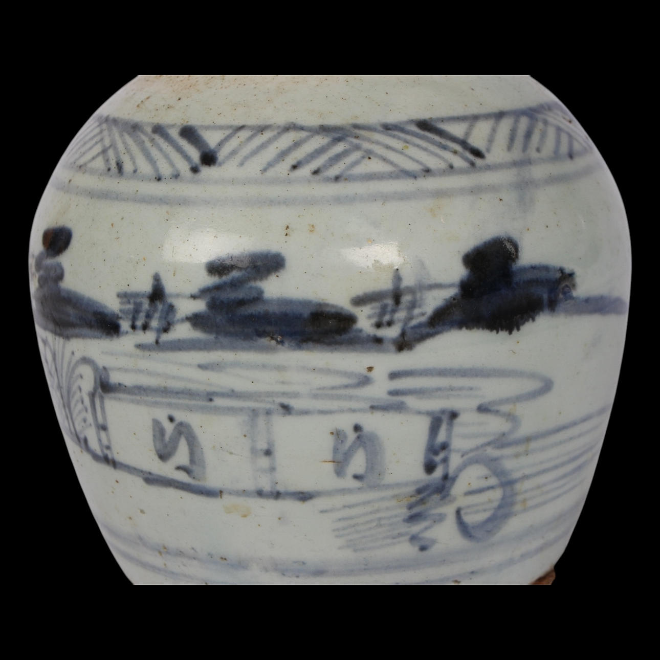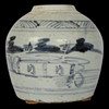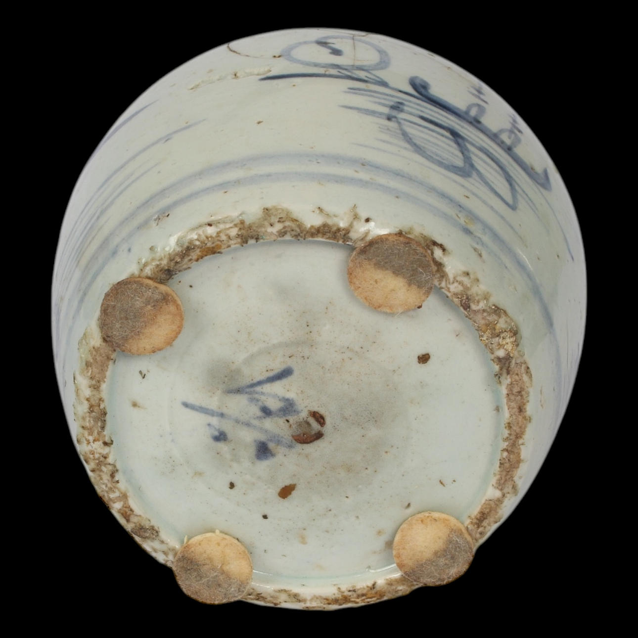 Decoración en esmalte azul, firmada, sin tapa. Altura aprox. 17 cm.