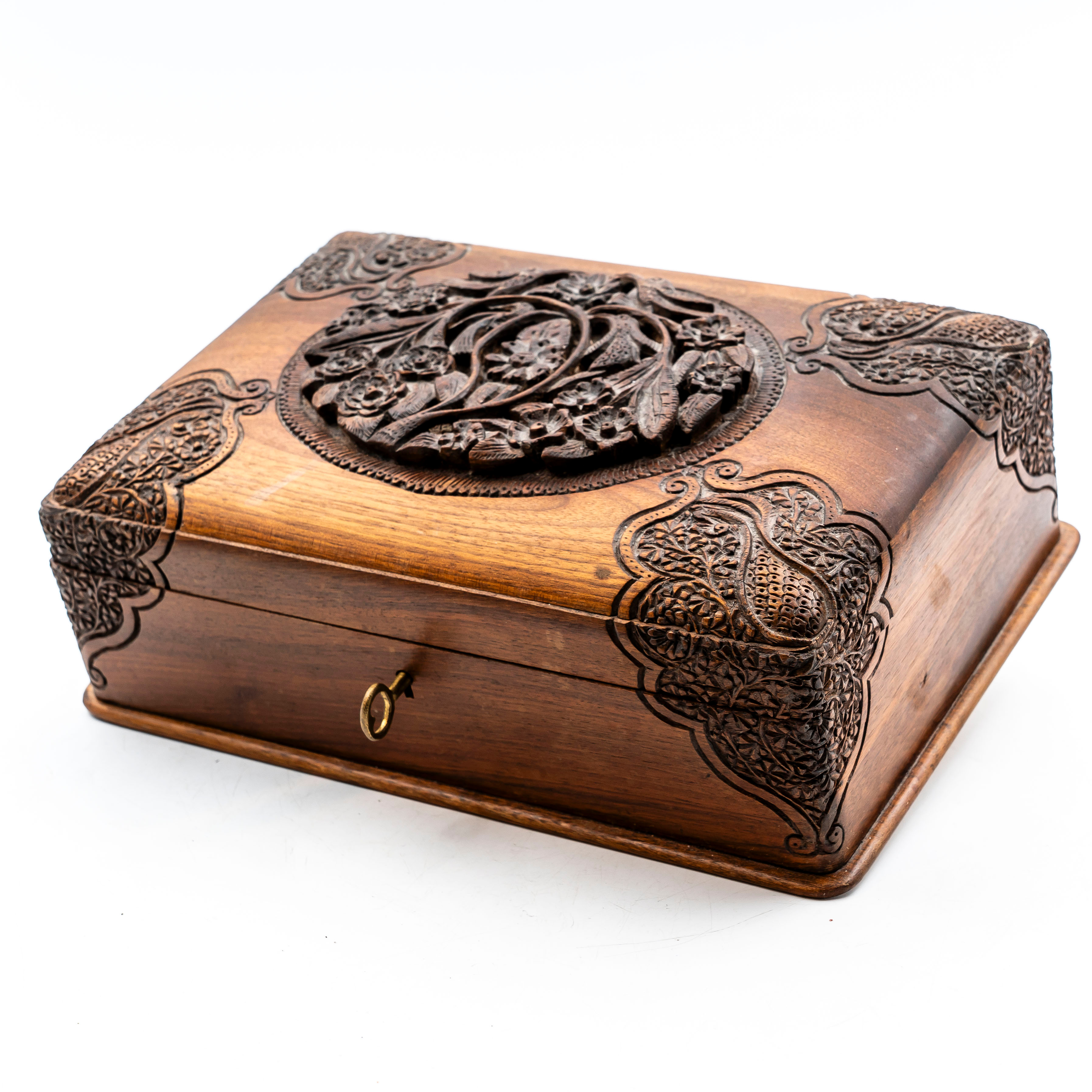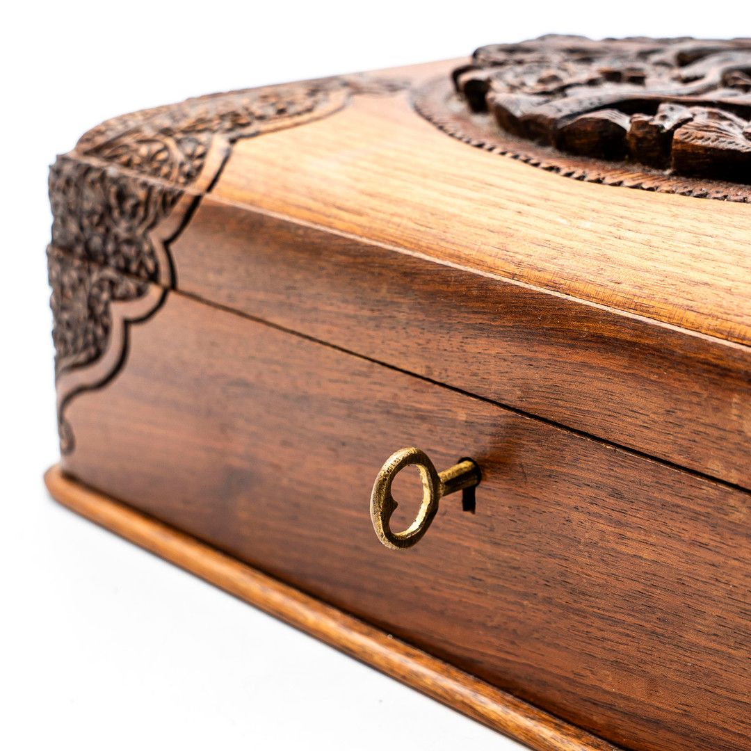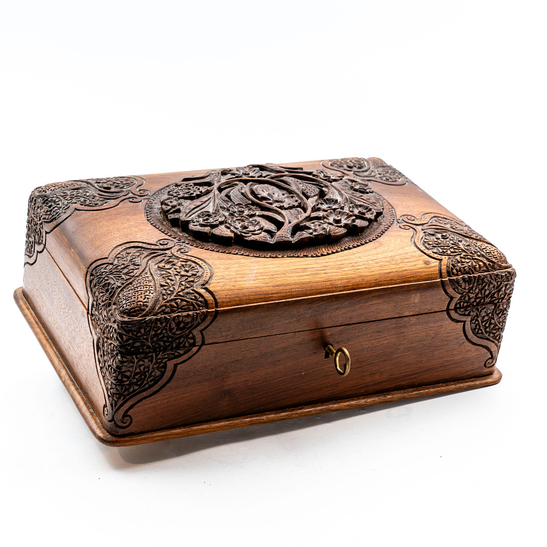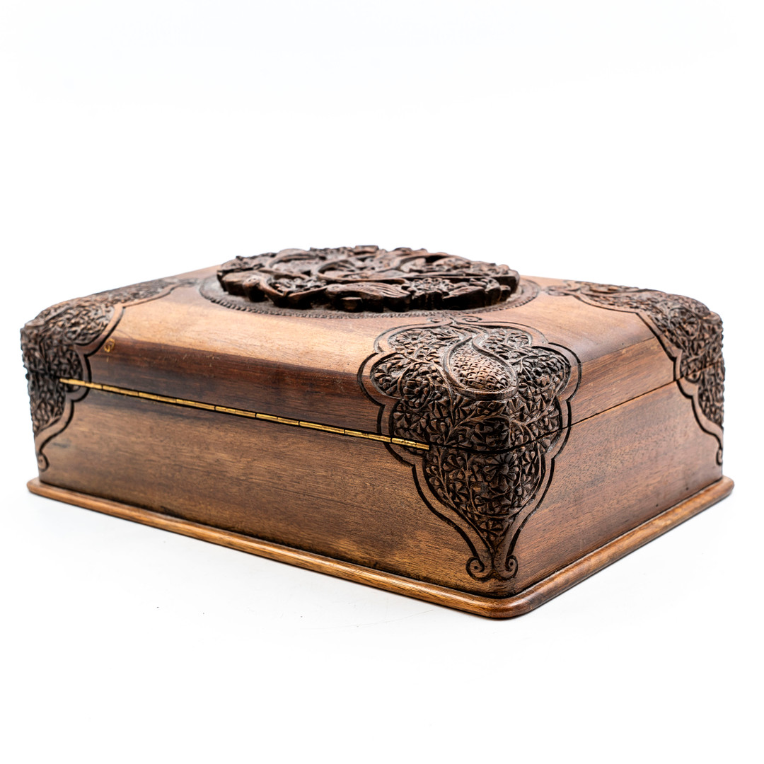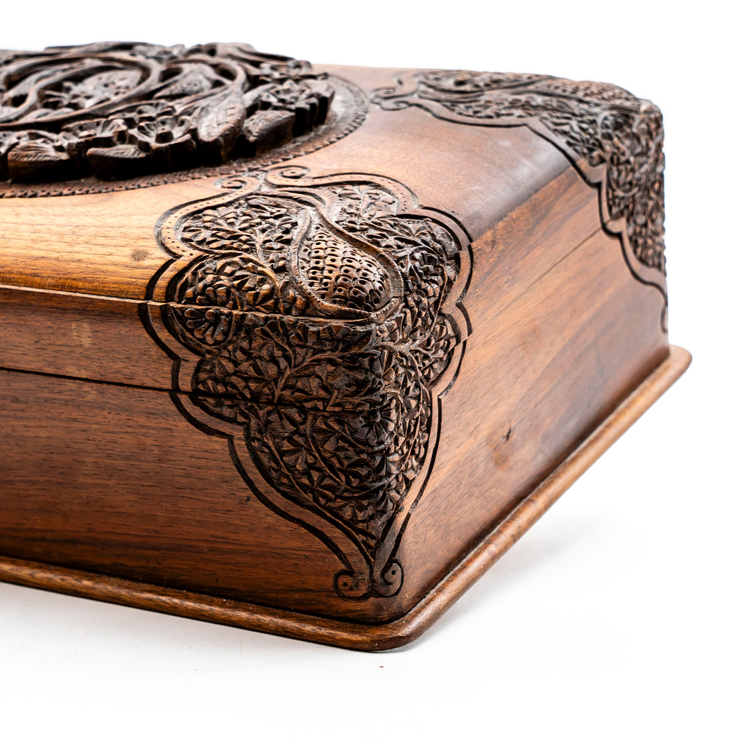 4176575. Joyero tallado, madera, cachemir.