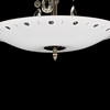 Barra y copa de techo cromadas con decoración de prismas. Pantalla de cristal opalescente con decoración en el suelo. Tres puntos de luz. Diámetro 56, altura 44 cm.