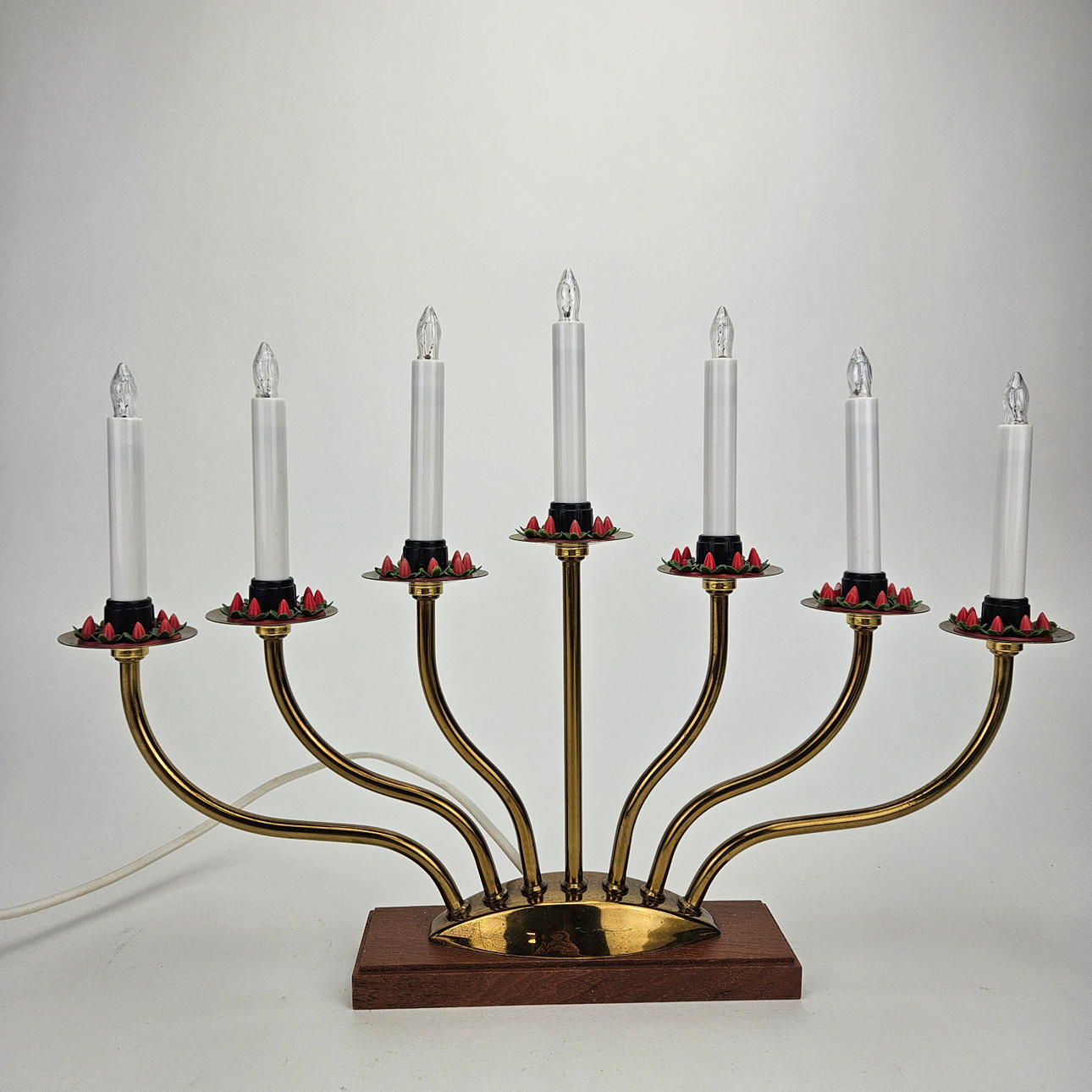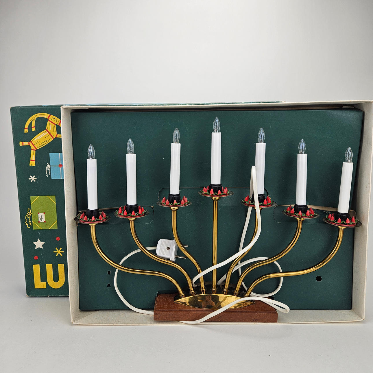Latón y madera. En caja original. Longitud: aprox. 44, altura 32 cm.