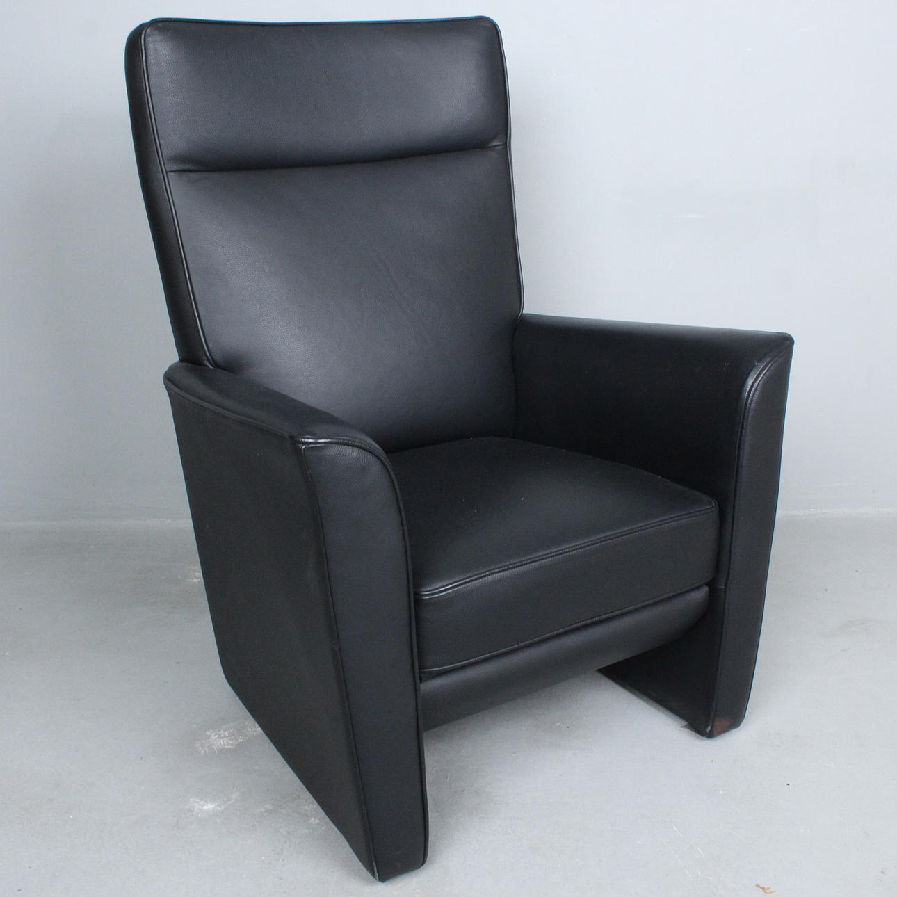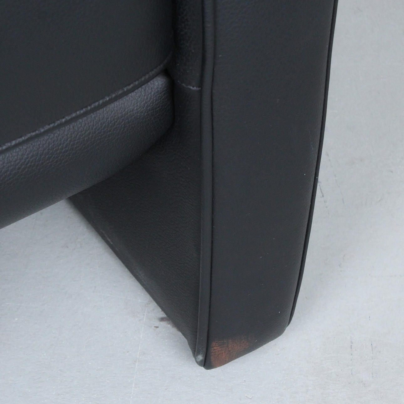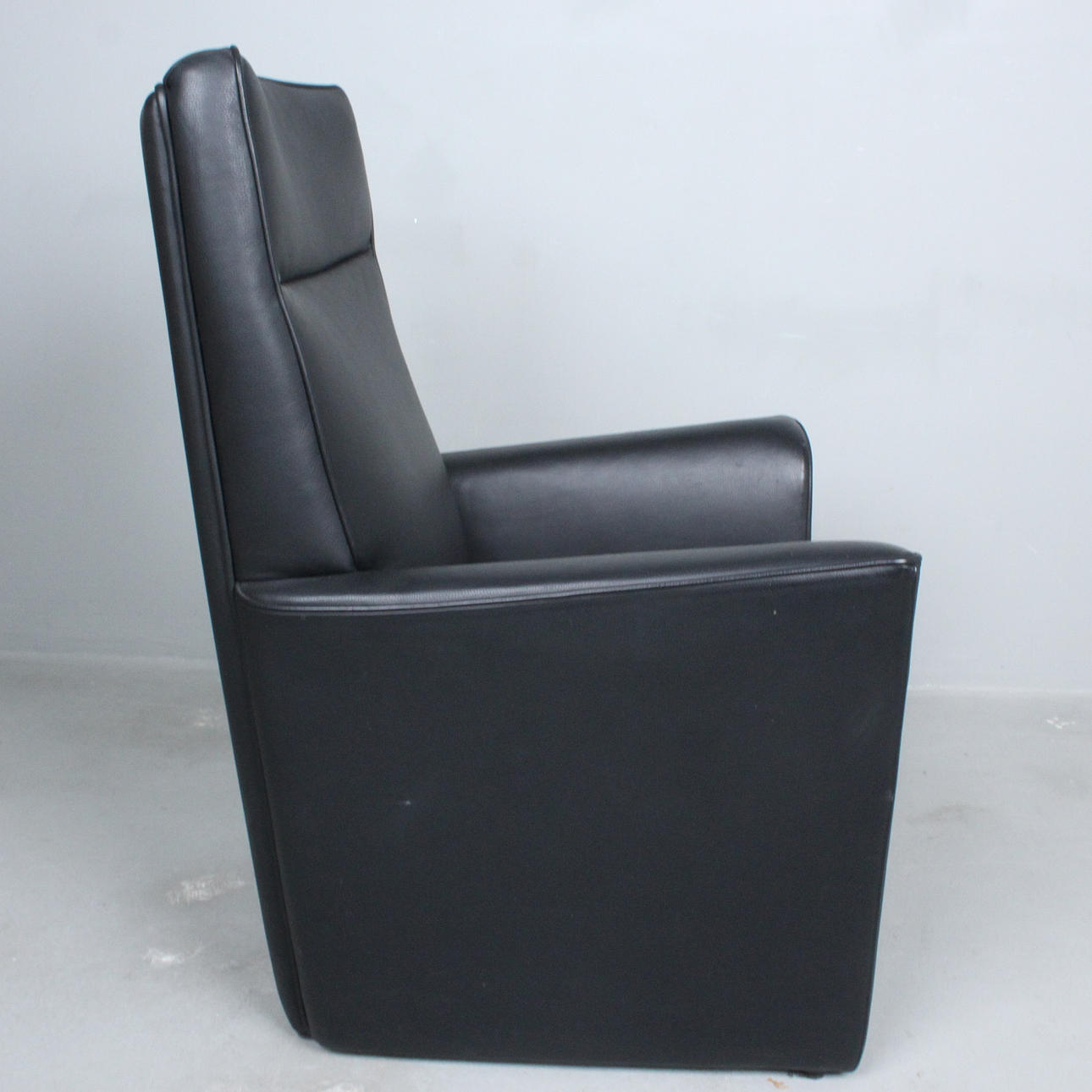 Sillón 3B de madera y piel negra. Dimensiones: h. 113 cm. Ancho: 69 cm T. 74,5 cm. Altura del asiento: h. 43 cm.