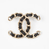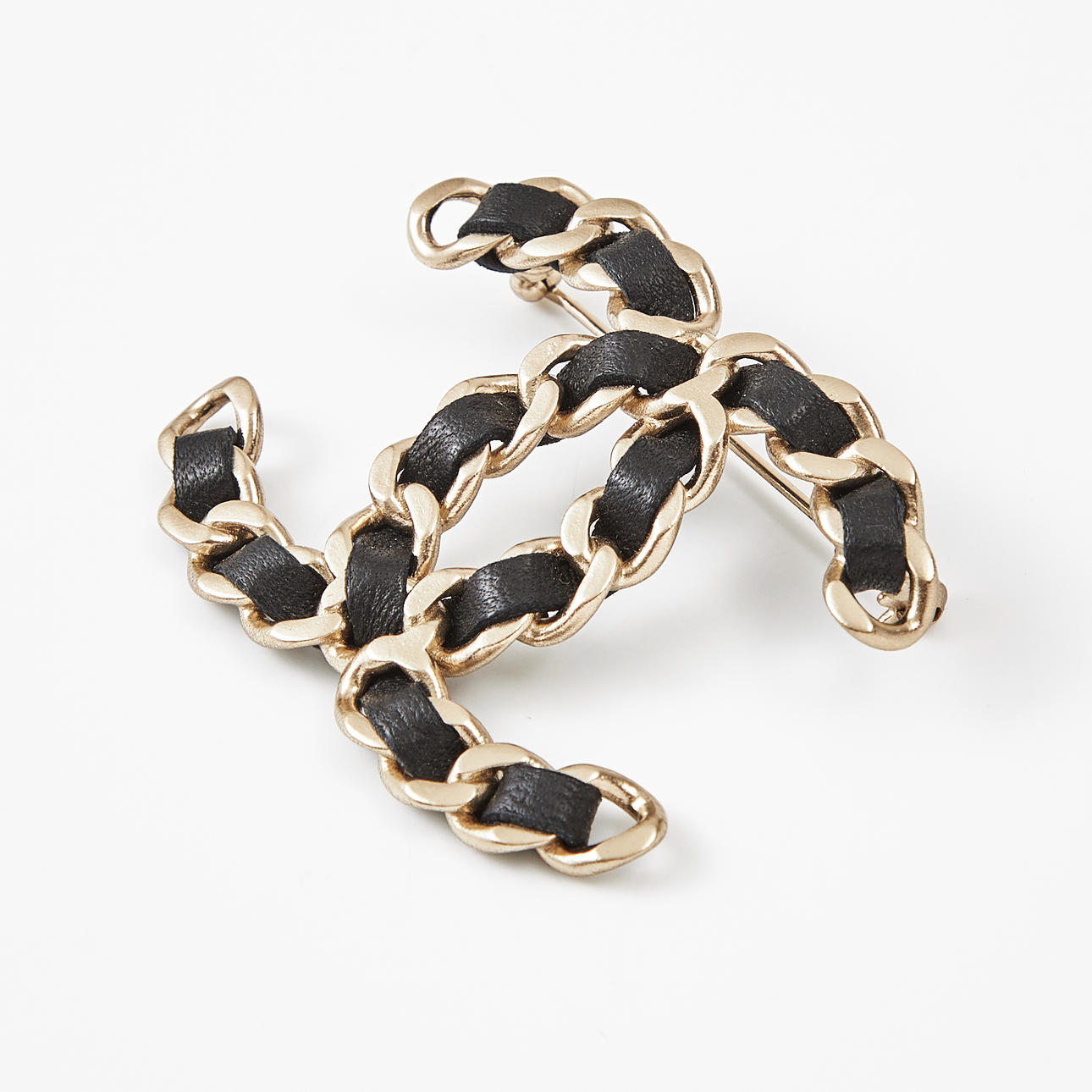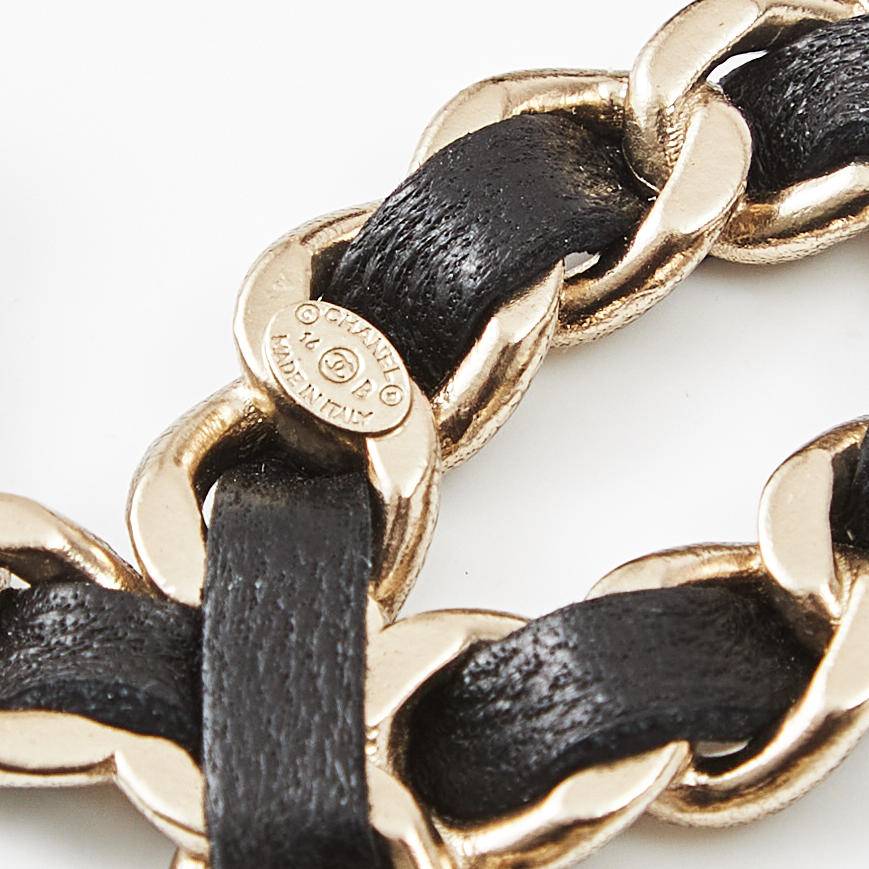 CC en cadena mate con correa de piel retorcida, con la inscripción «Chanel made in Italy», dimensiones aproximadas de 4,5 x 6 cm.