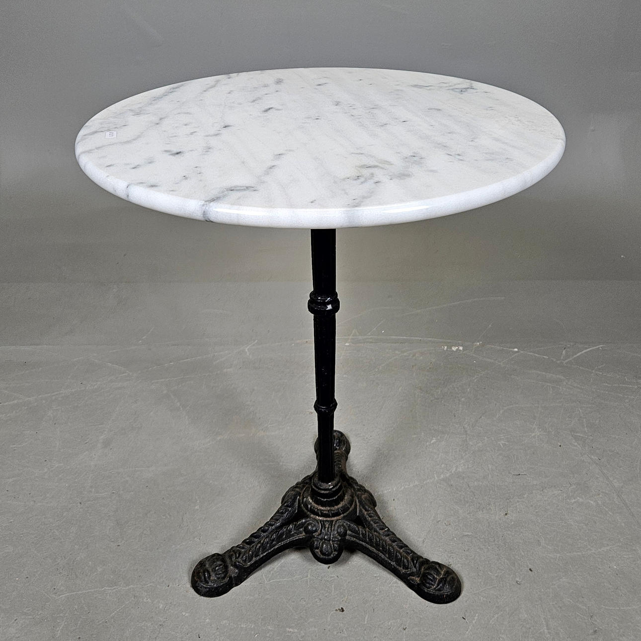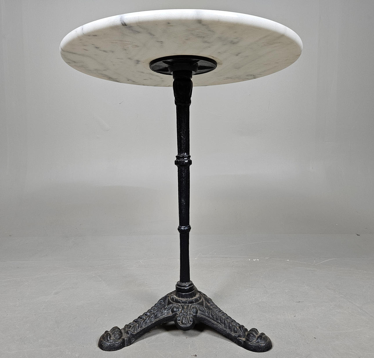 Losa de piedra, probablemente de mármol. Diámetro aprox. 60, altura 73 cm.