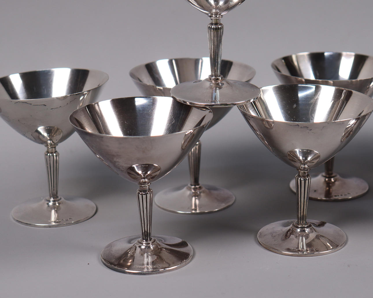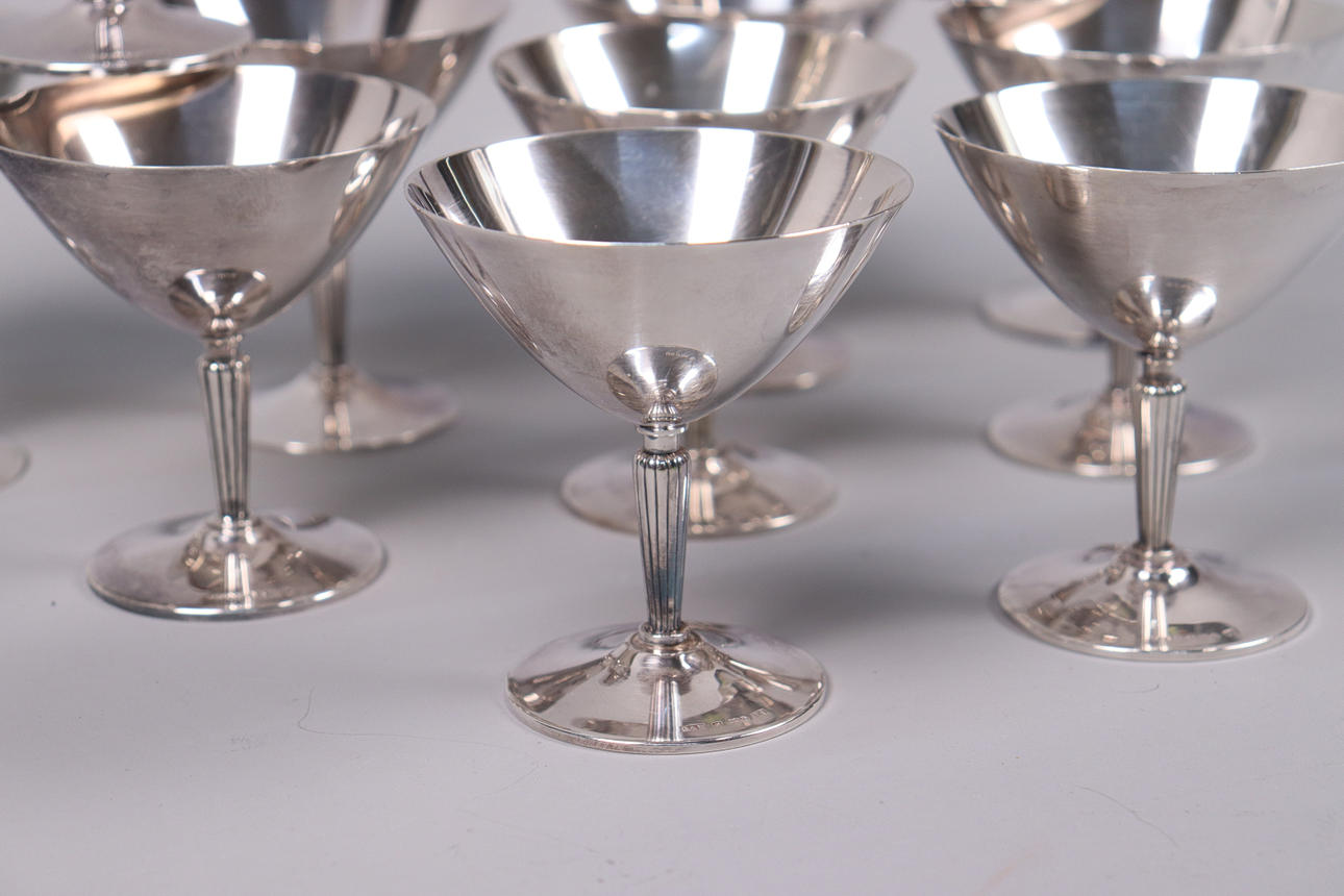 5 piezas con monograma, 1973 6 piezas sin monograma, 1941 Altura 9 cm. Peso total 956 gramos.