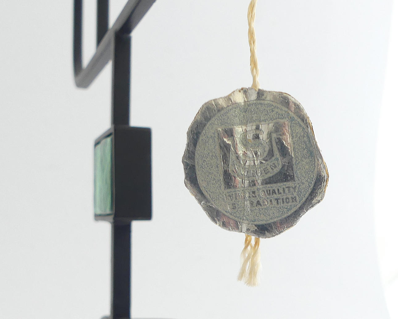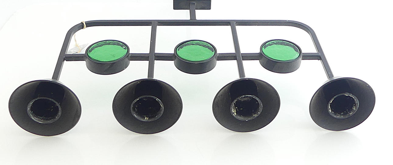 Marco en hierro forjado, piezas decorativas en vidrio verde.