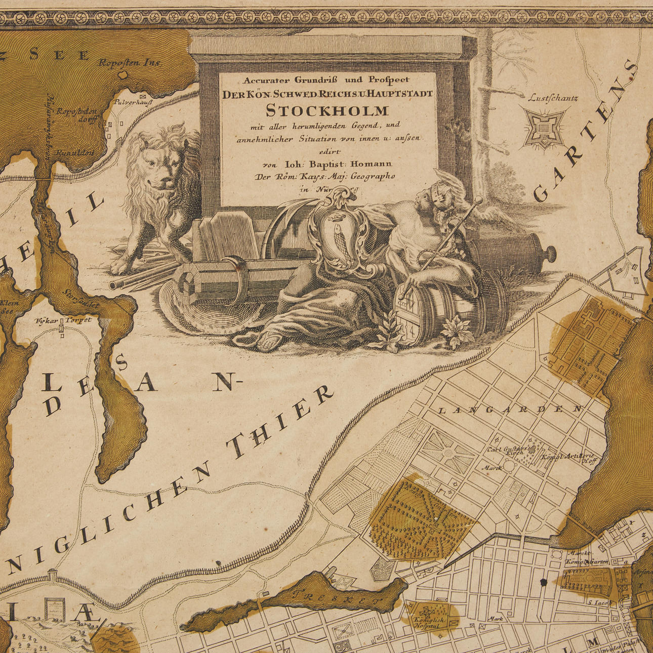HOMANN, JUAN BAUTISTA. Son precisos Grundriss y Prospect. Género. Schwed. Reichs. u. Hauptstadt Stockholm con su ubicación muy similar... Núremberg c. 1730.