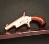 Pistol American Single Shot Make Colt modelo Derringer. Disparador anular calibre 41. No. No. Desaparecido. Longitud del caño 6,5 cm. Los lados del pistón son de madera. Gatillo oculto.