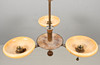 4239659. LÁMPARA DE TECHO de latón con 3 vasos de cristal.