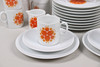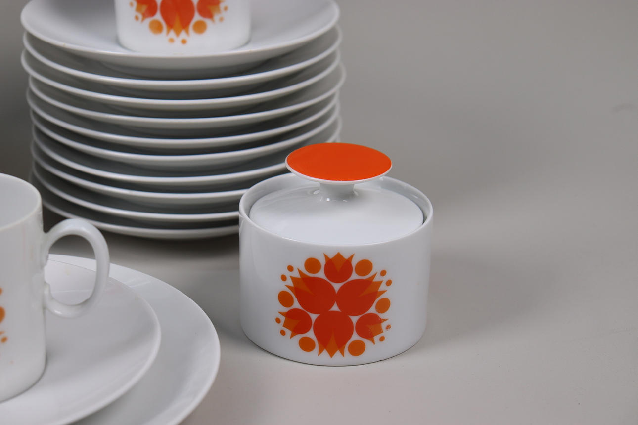 9 tazas 12 platillos de café 12 guarniciones, 17,5 cm de diámetro. 1 azucarero 1 pizca de leche.