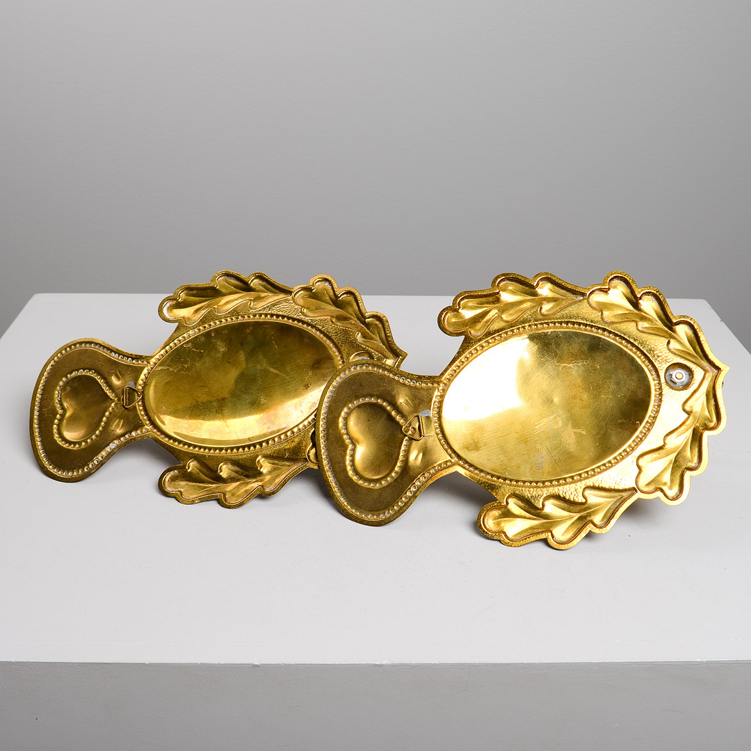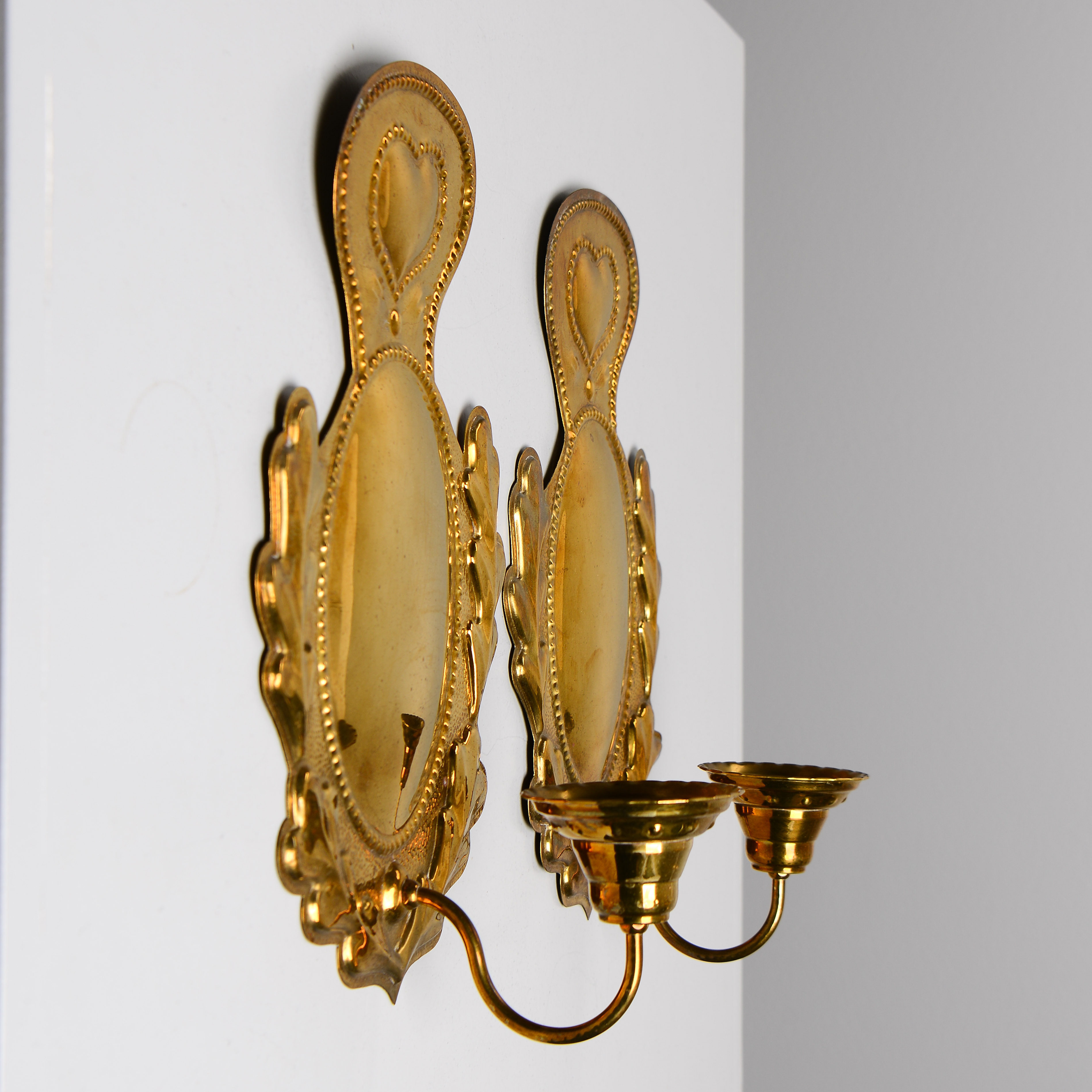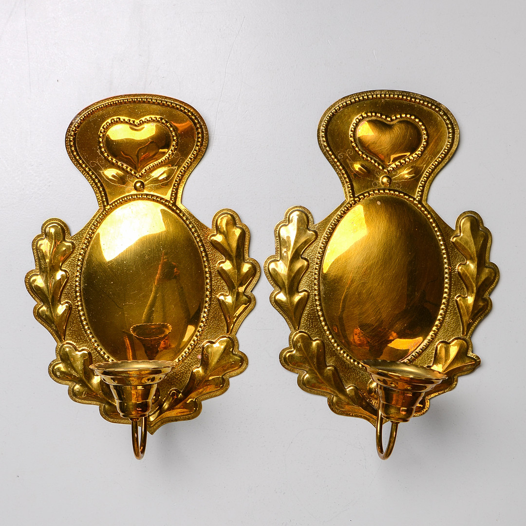 4243507. Un par de candelabros de latón, siglo XX.