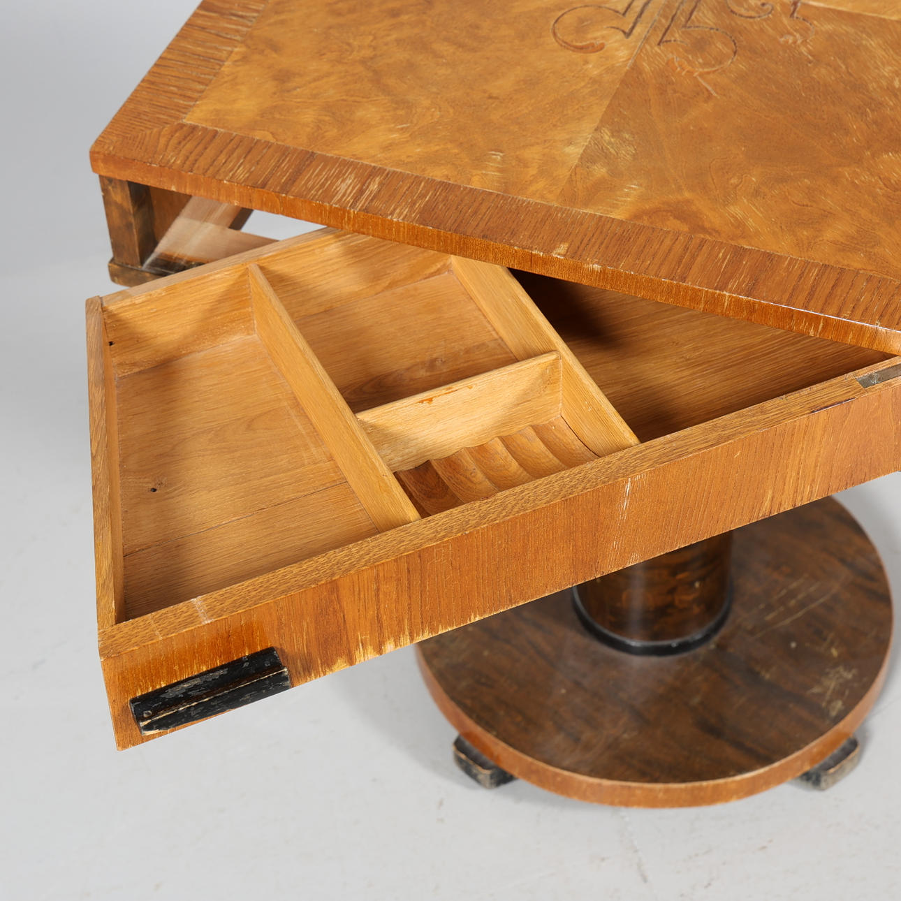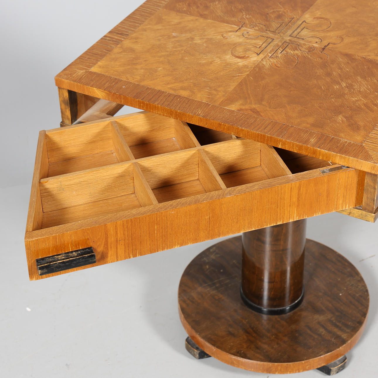 4244109. Mesa de esquina con cajones, intarsia.