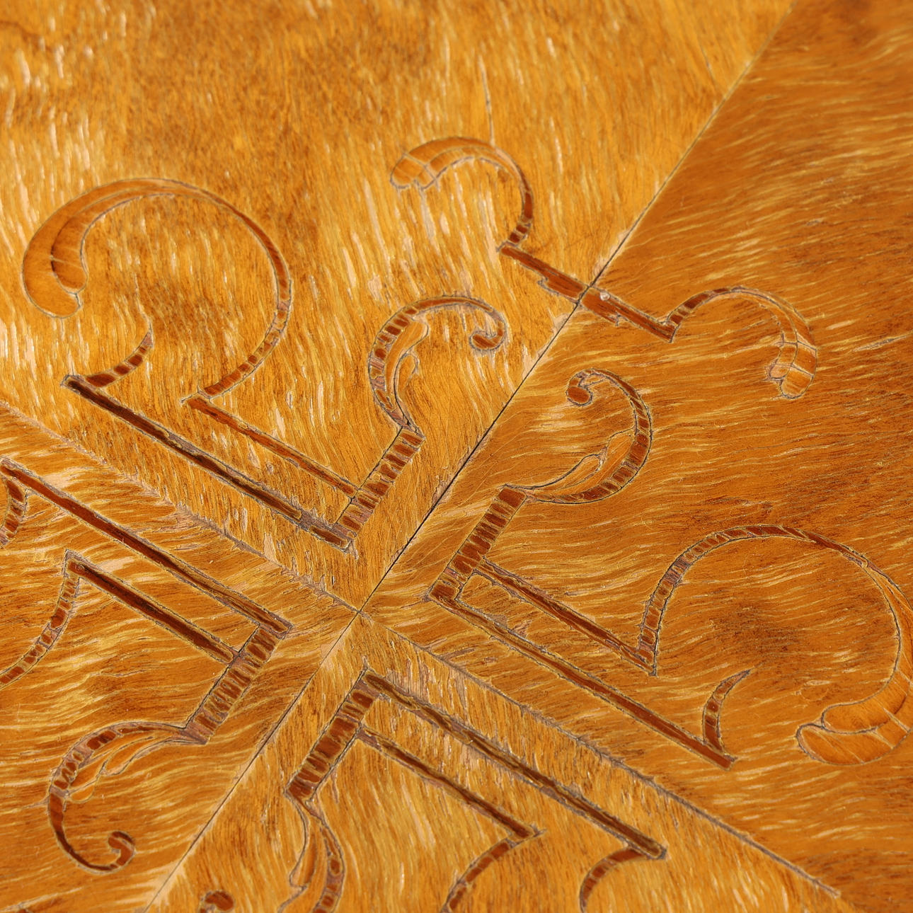Mesa de esquina con cajones, intarsia.