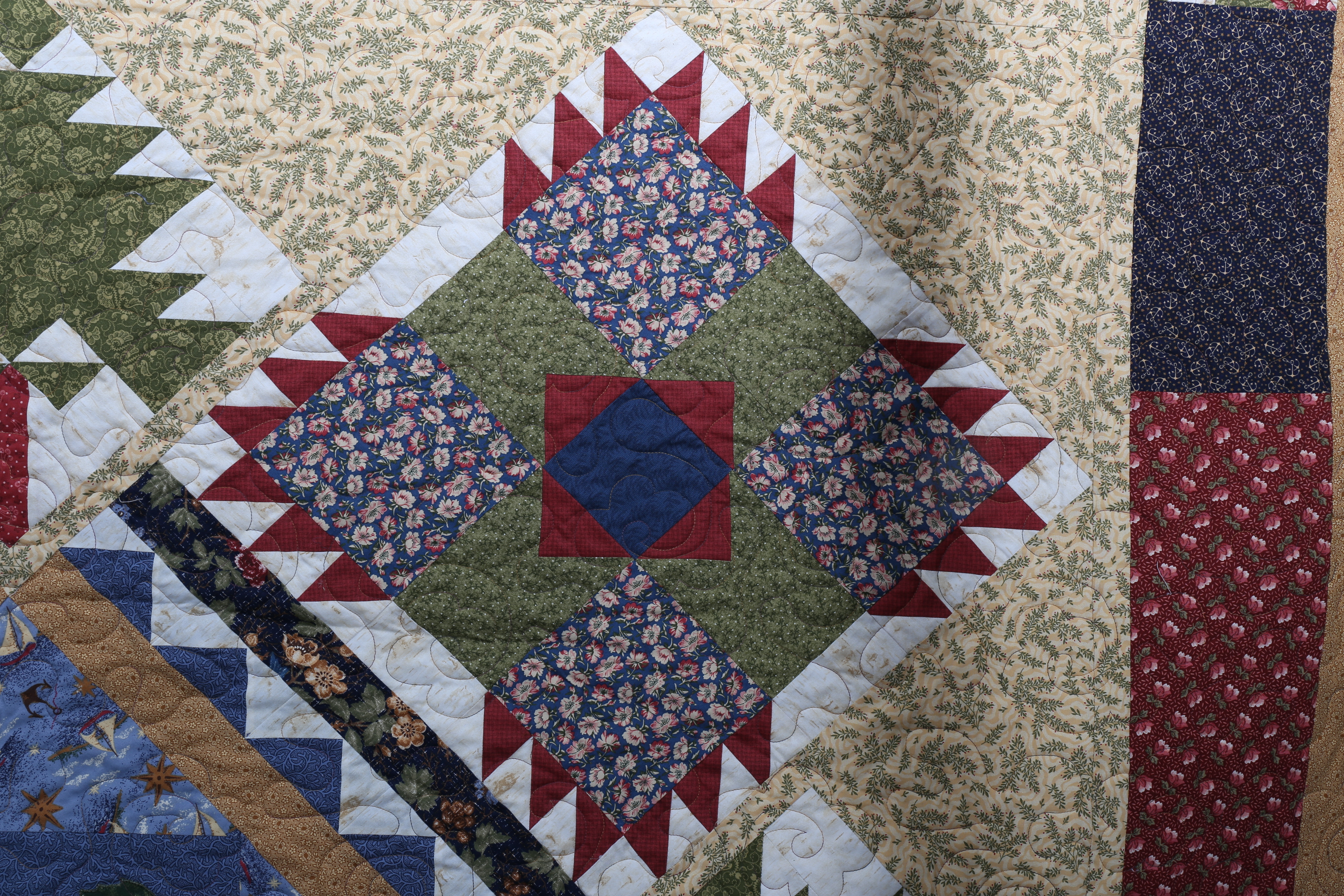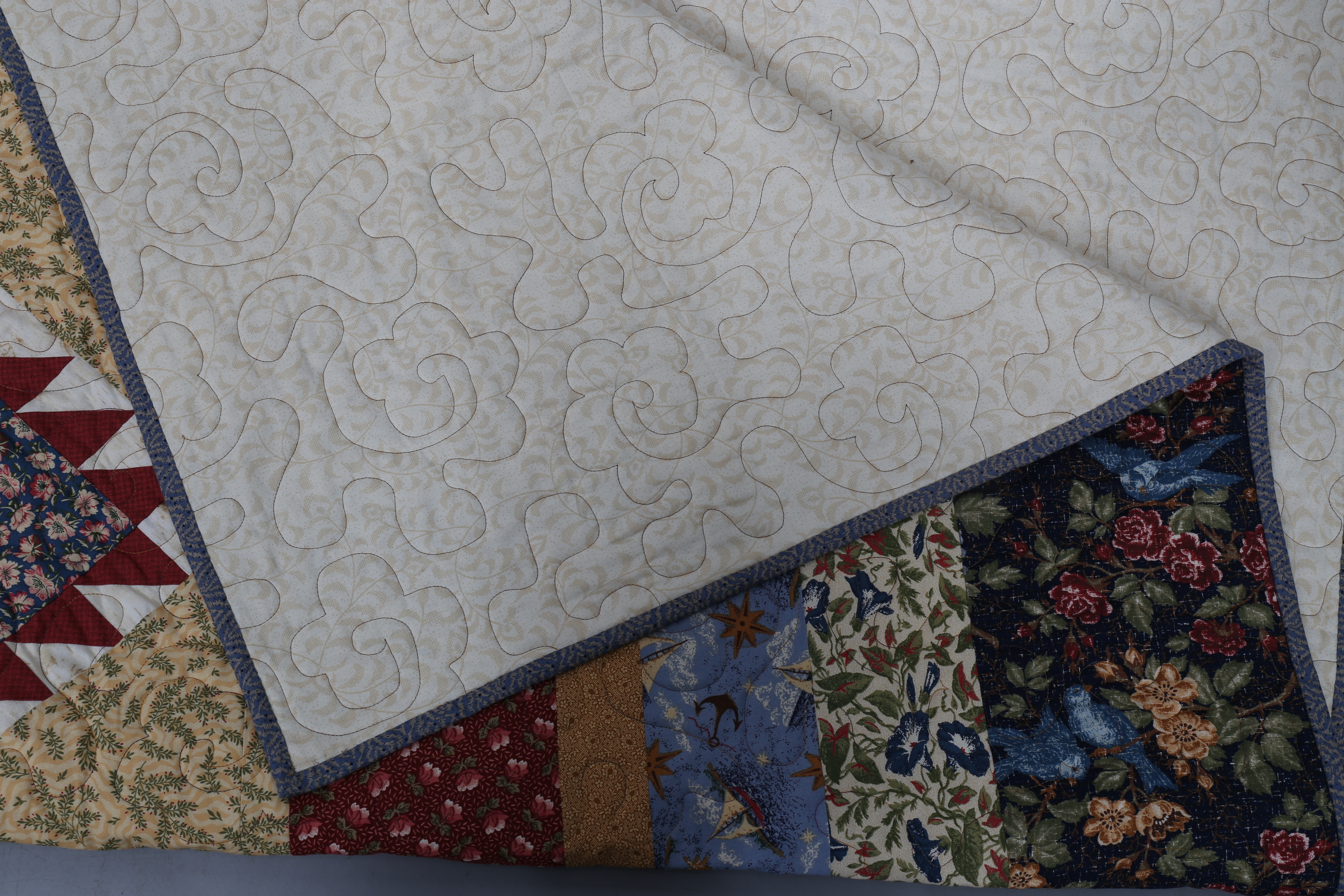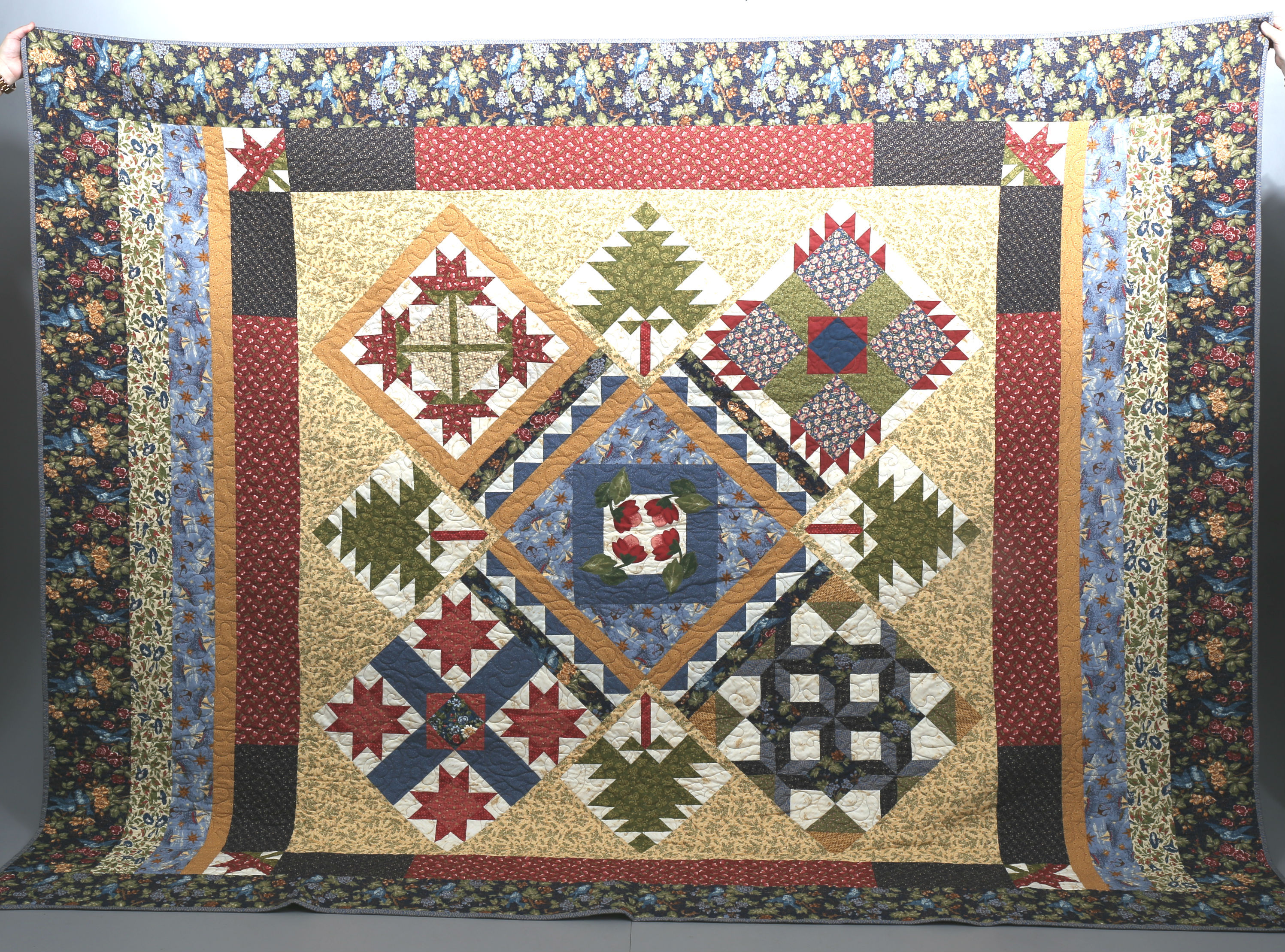 424466. CUBRE CAMA, técnica parche, algodón, 235 x 285 cm.