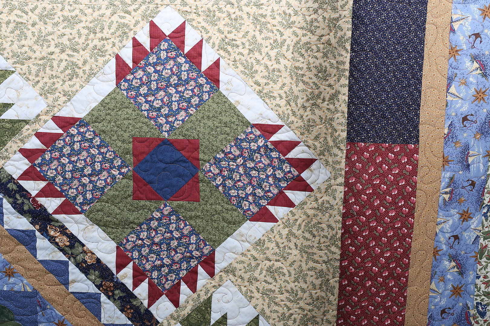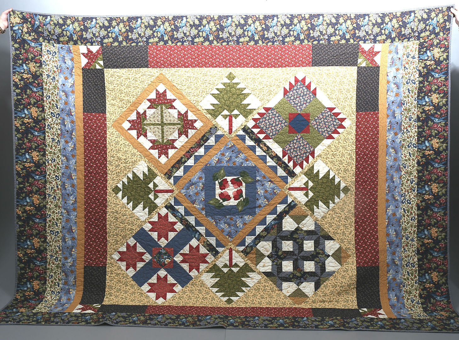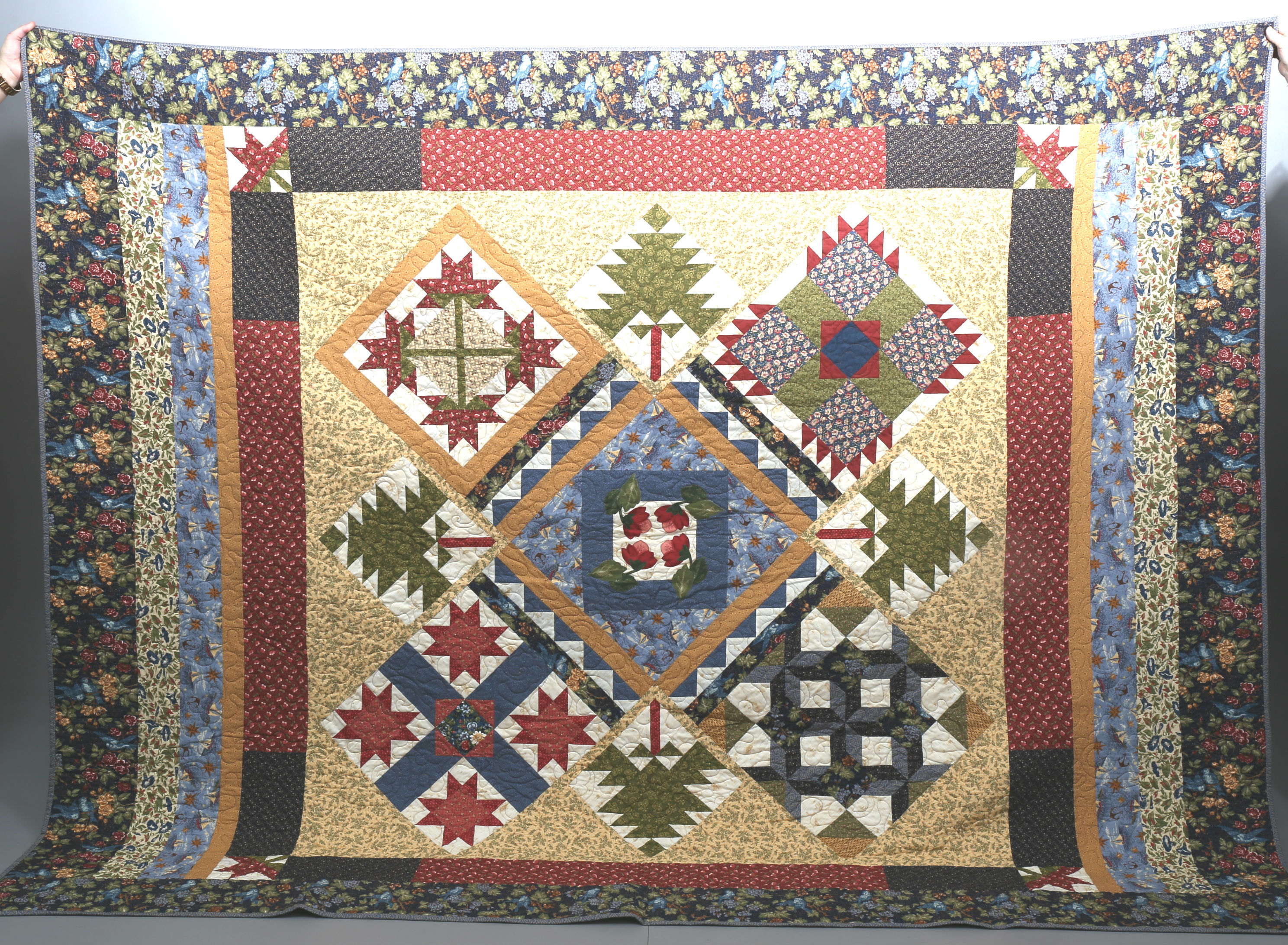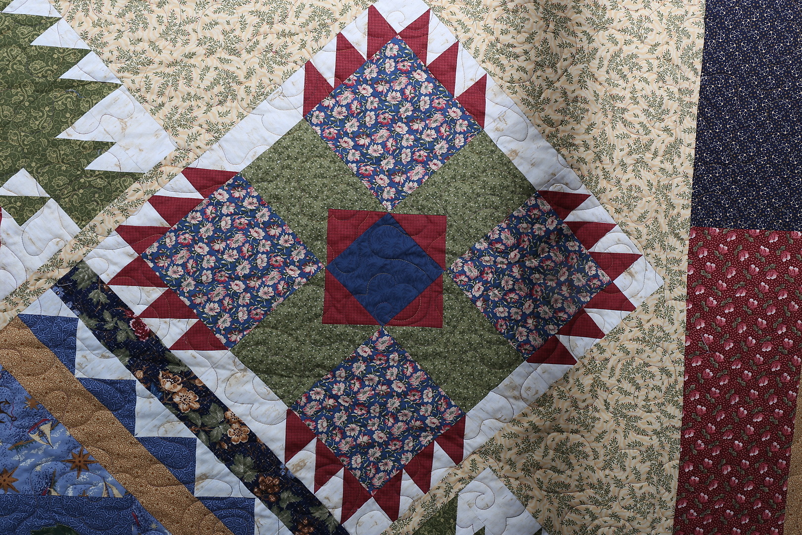 424466. CUBRE CAMA, técnica parche, algodón, 235 x 285 cm.