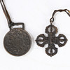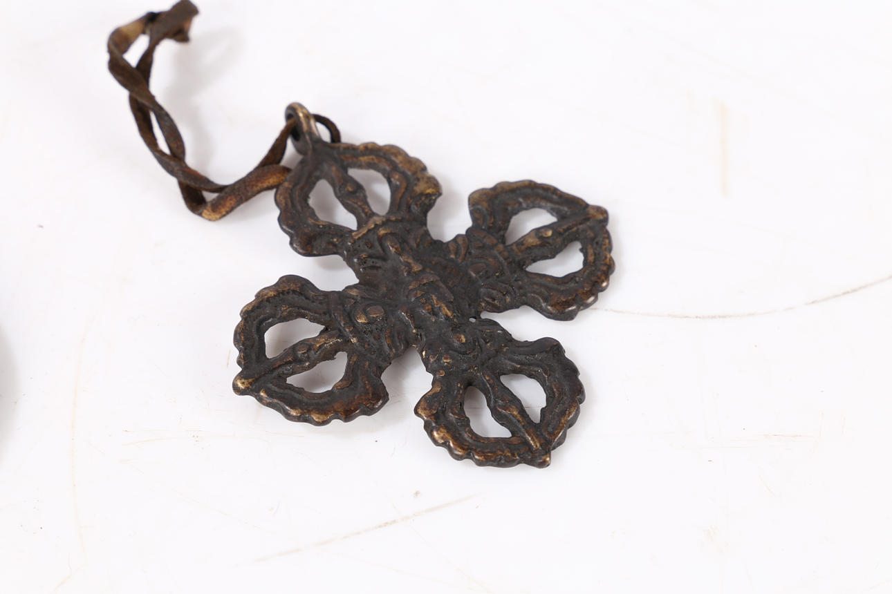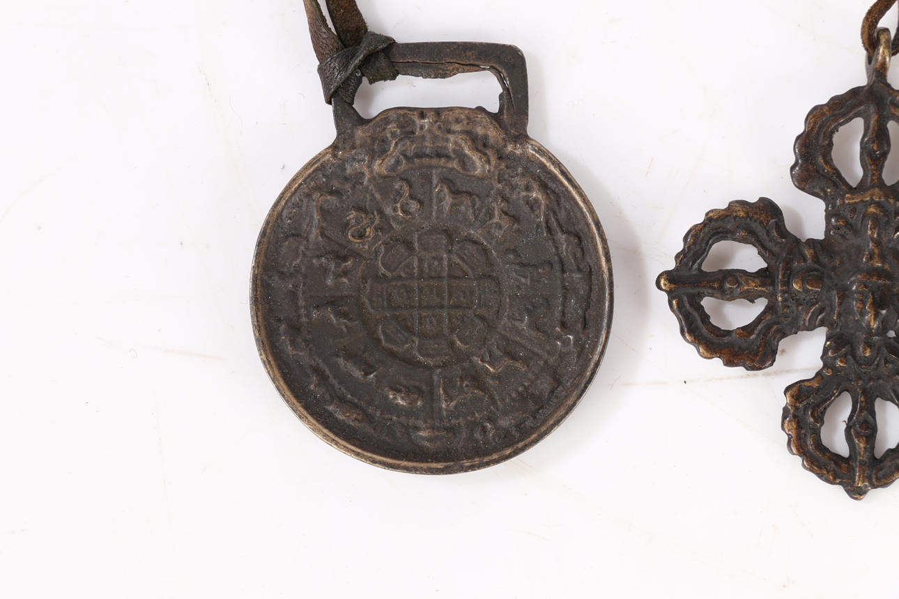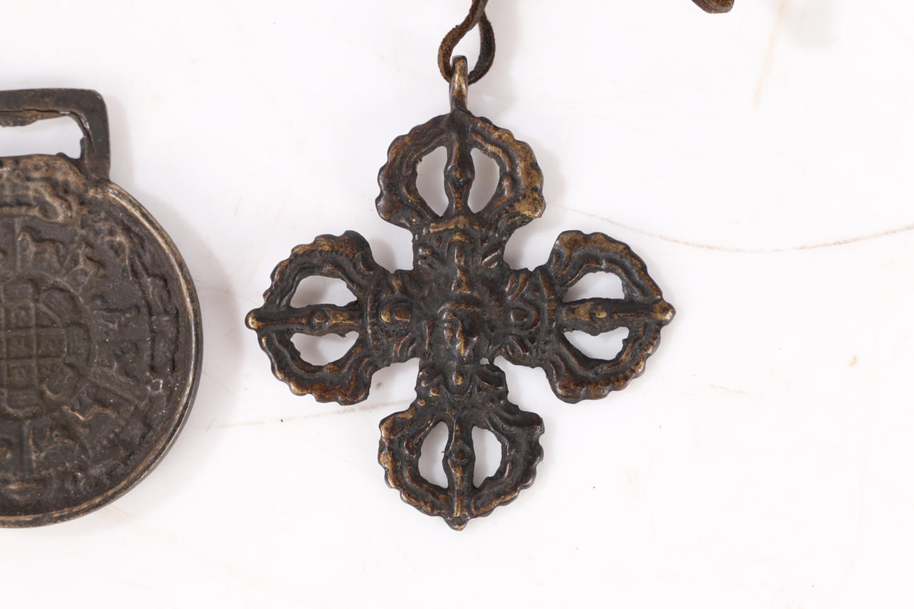 Dos colgantes tibetanos, uno en forma de cruz de 6 cm de ancho (2).
