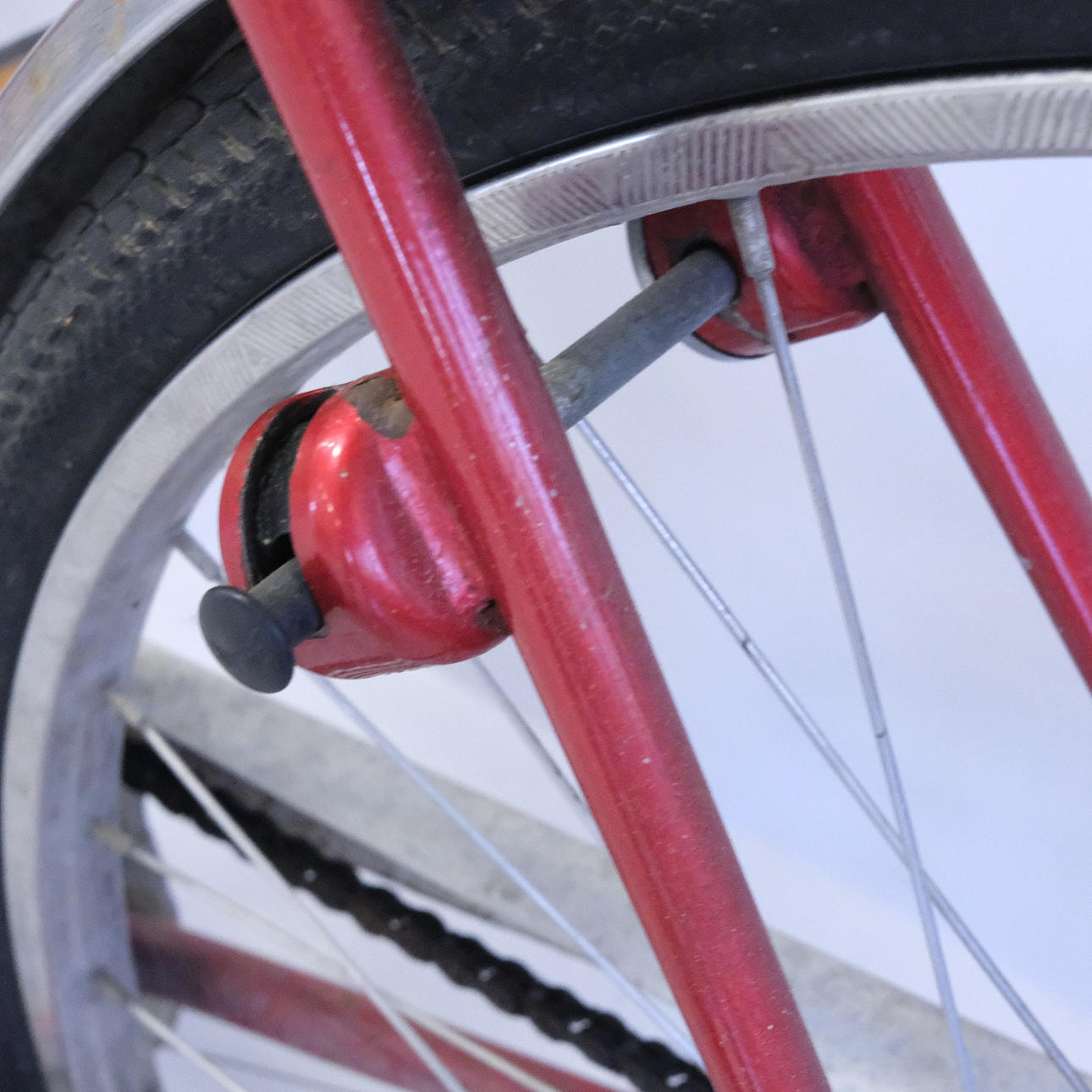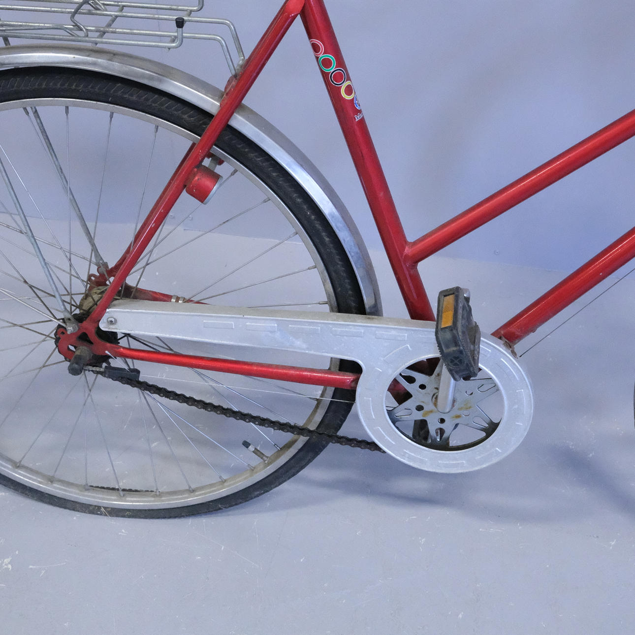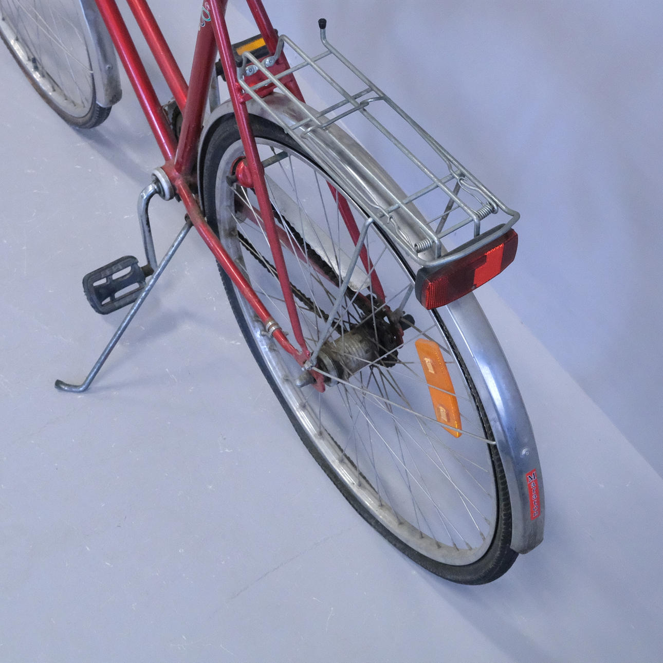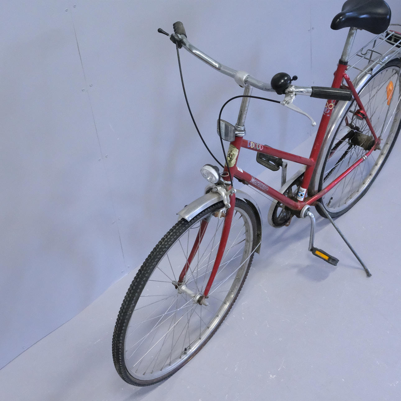 Uso y desgaste de la superficie. Bloqueado, falta la llave. Sillín con rasgaduras. Ruedas que necesitan una revisión.