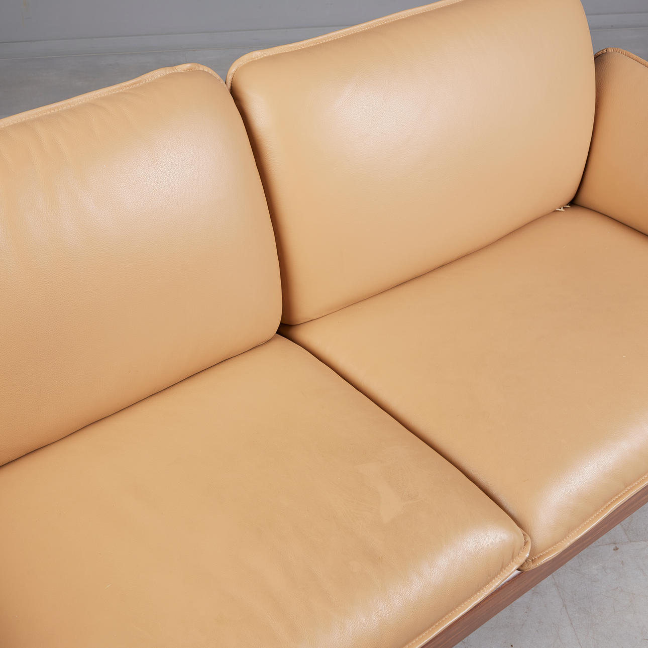 4257405. Sofá de dos plazas/teca, cuero, años 70.