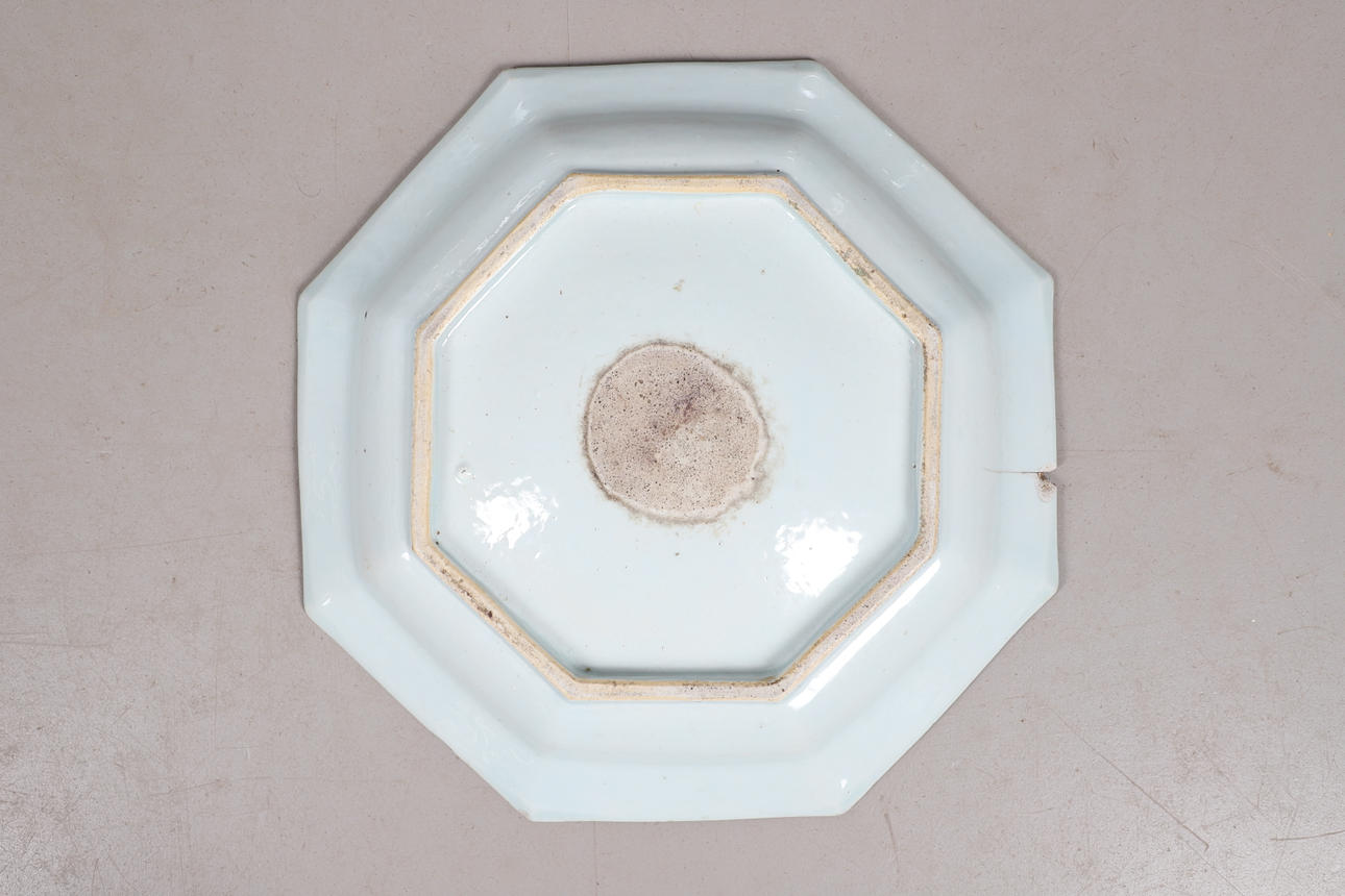 4261571. PLATO CHINO OCTOGONAL AZUL Y BLANCO.