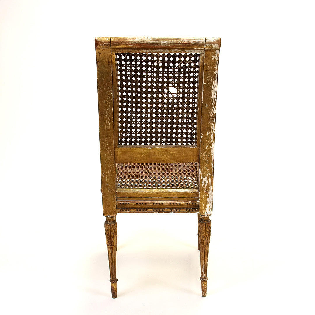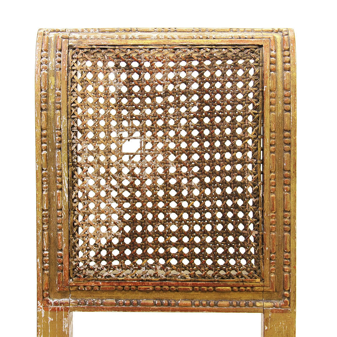 Silla infantil Regency pintada en dorado con respaldo de mimbre. 70 x 34 x 36 cm.