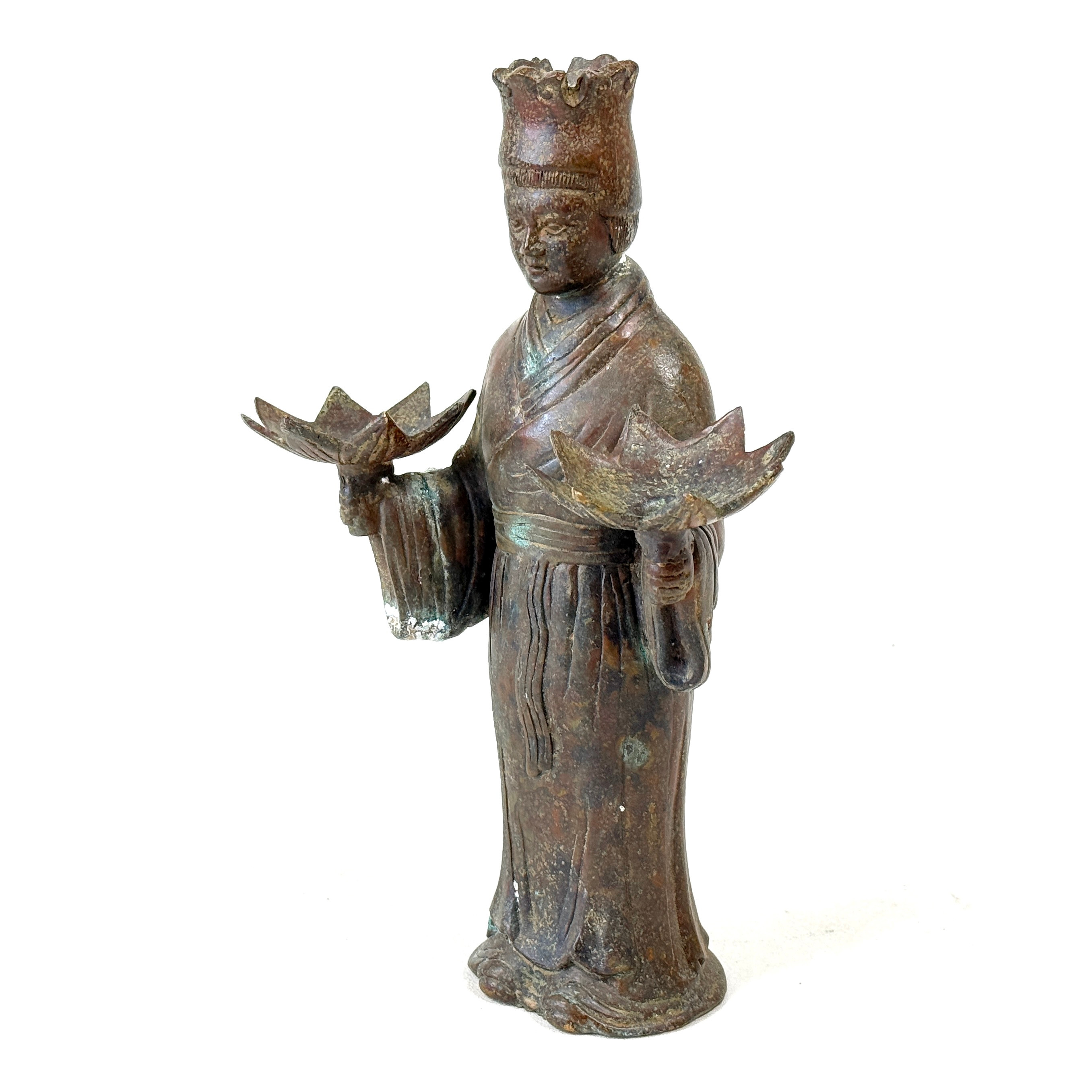 4268061. CANDELABRO GRANDE CON FIGURAS DE BRONCE ORIENTAL.