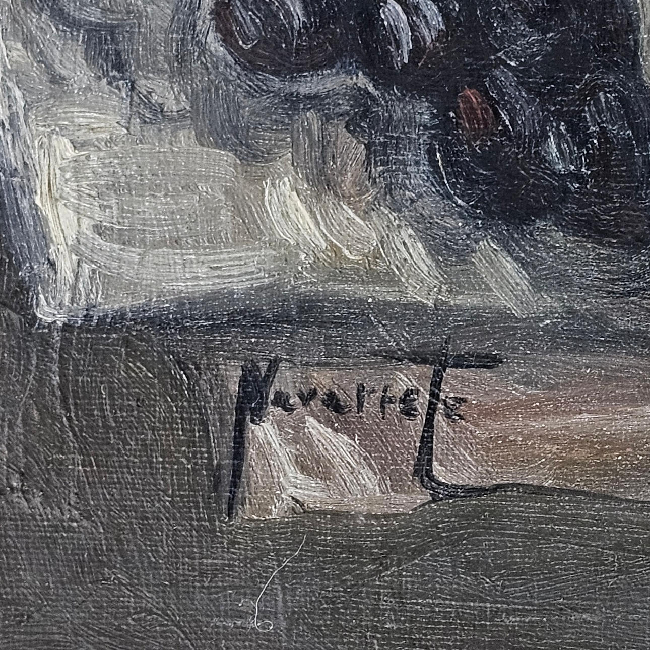 Lienzo pegado a cartón. Ligera falta.